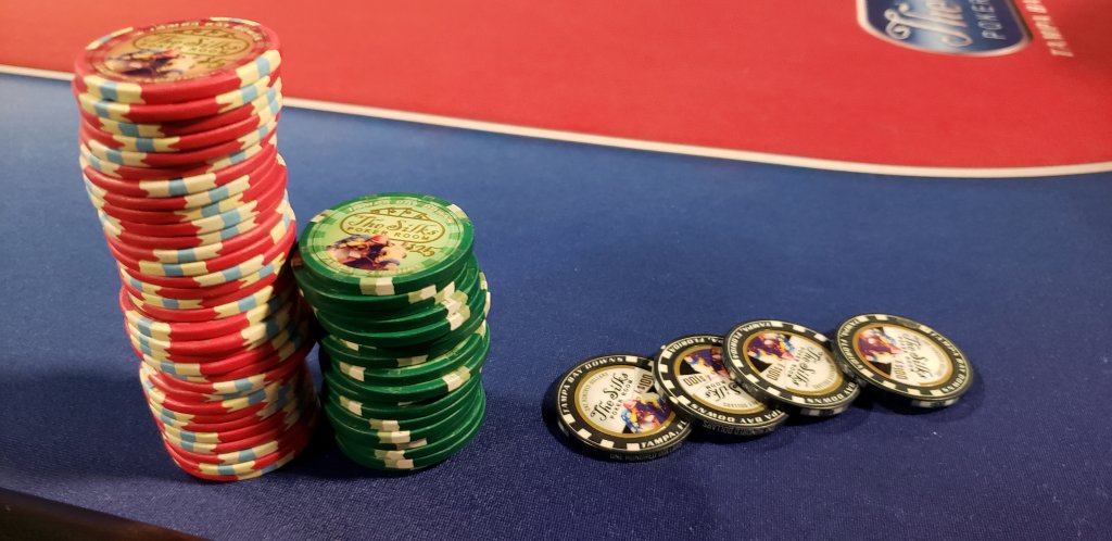 Was down $700 at one point, got it all-in 3 times but chopped when running twice, fought back to even and eventually had to settle for a loss of $150 on the day