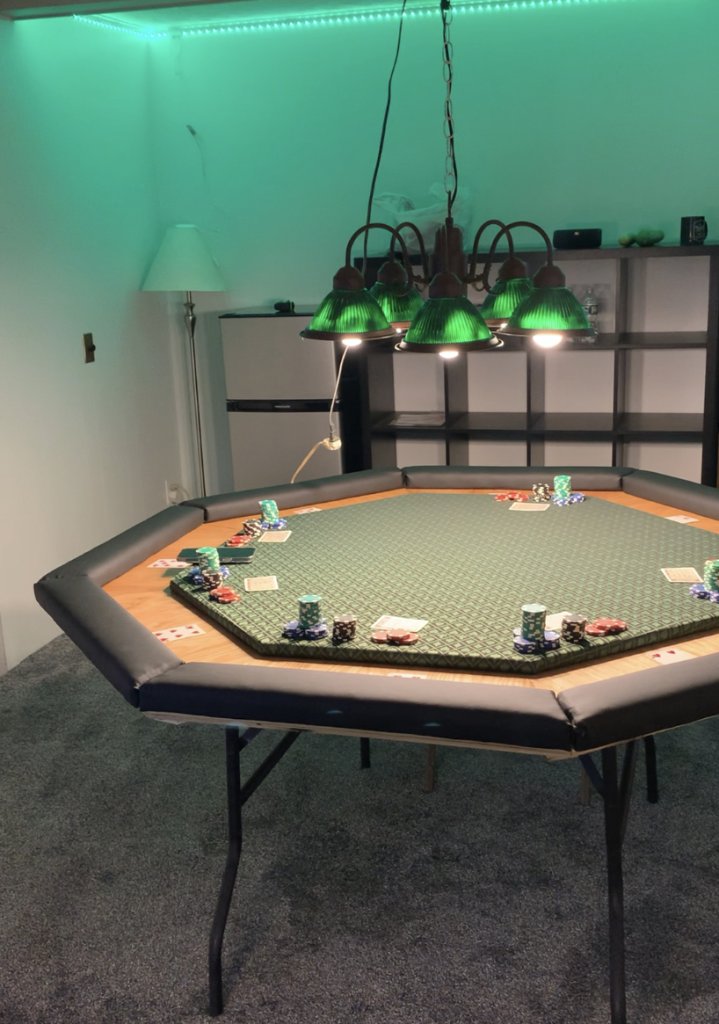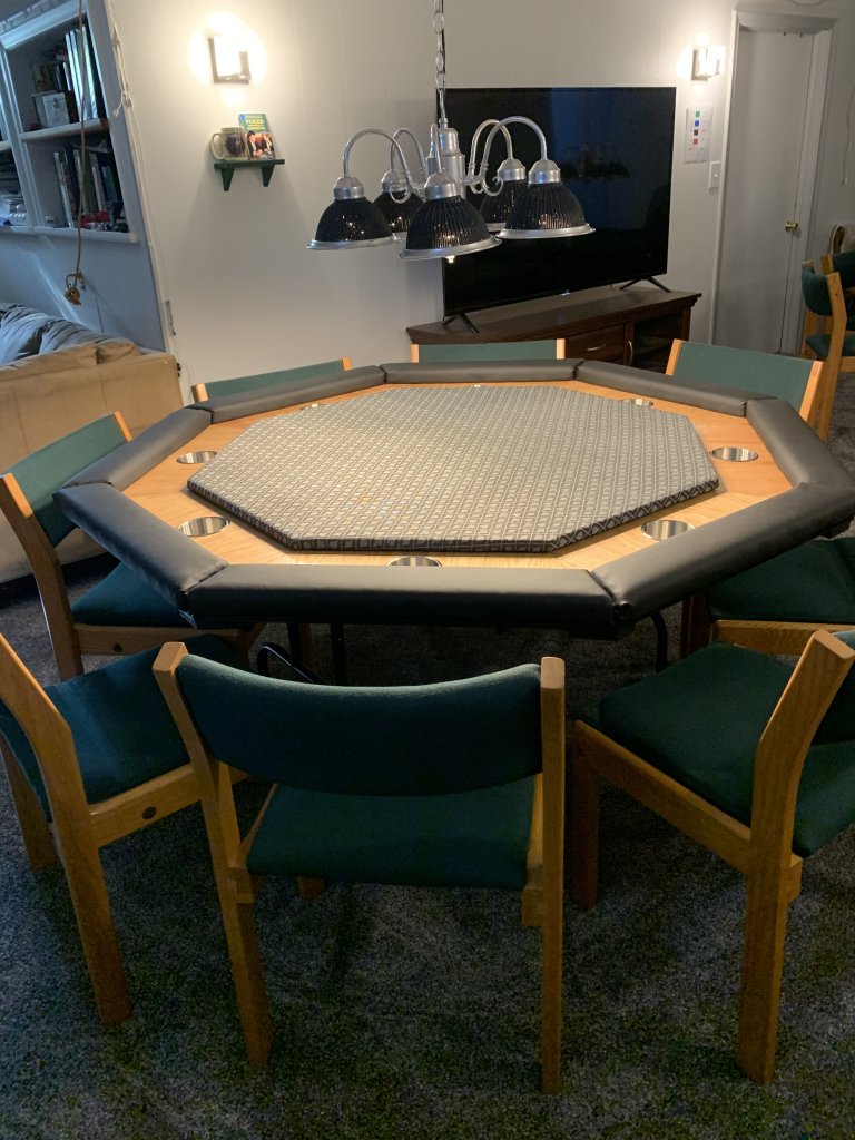 We leaned a ton from this (our third table build in 3 months) and since I sold off one of my two home-built octagons (thanks again @scoobydoobs for the help on those two builds this past fall) I am assembling the start-up funds for what will be oval number two; Monaco Green. Same table different cloth and maybe an extra extra like a cash drawer underneath and one of a couple of other innovative add-ons we dreamed up. No spoilers. You’ll have to wait and see.