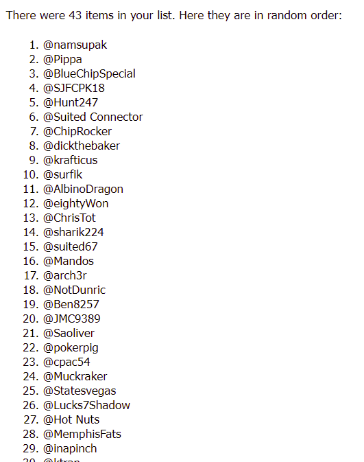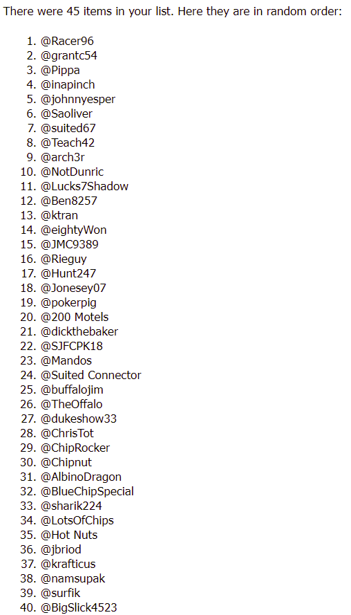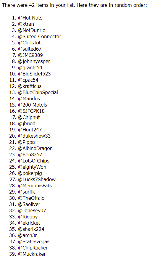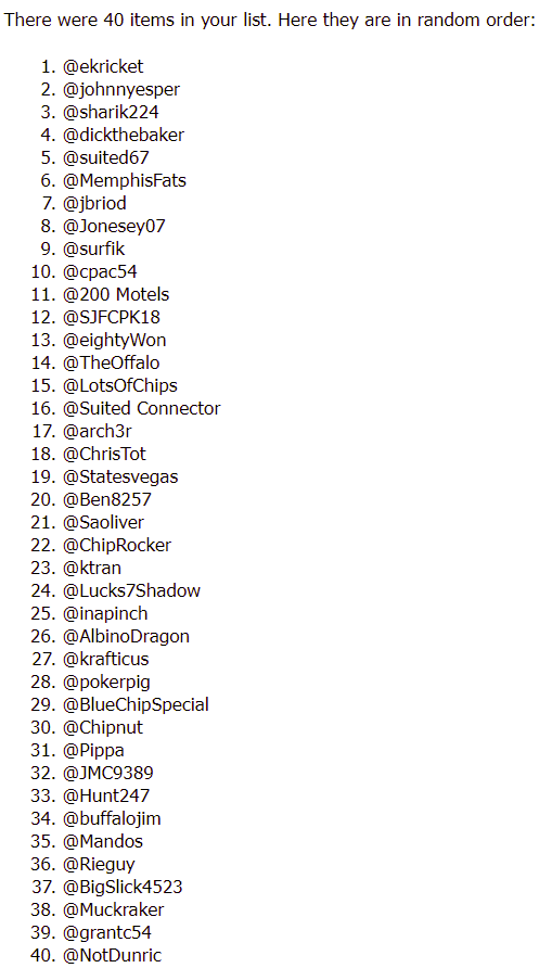 Oh, and to make it easier for me to figure out who all I am up against: