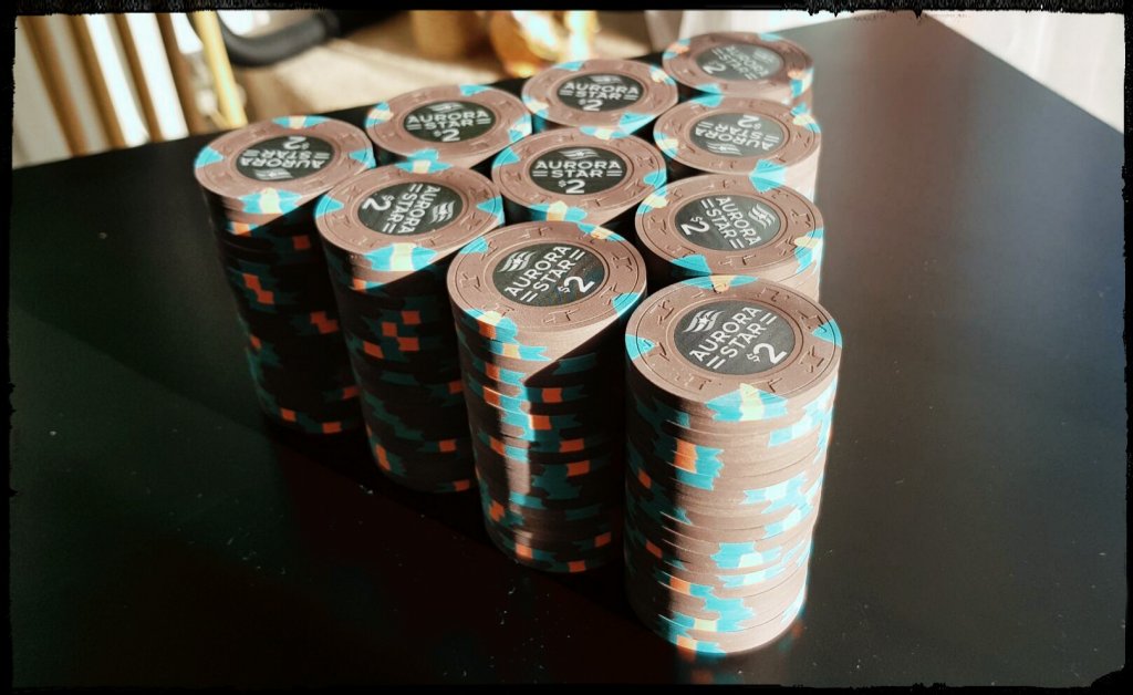 I think it's the extra color shining from all that gloriously exposed and uncovered clay.The cash chips don’t do anything for me. But those hot stamped tourney chips... What is it about hot stamped tourney chips?
