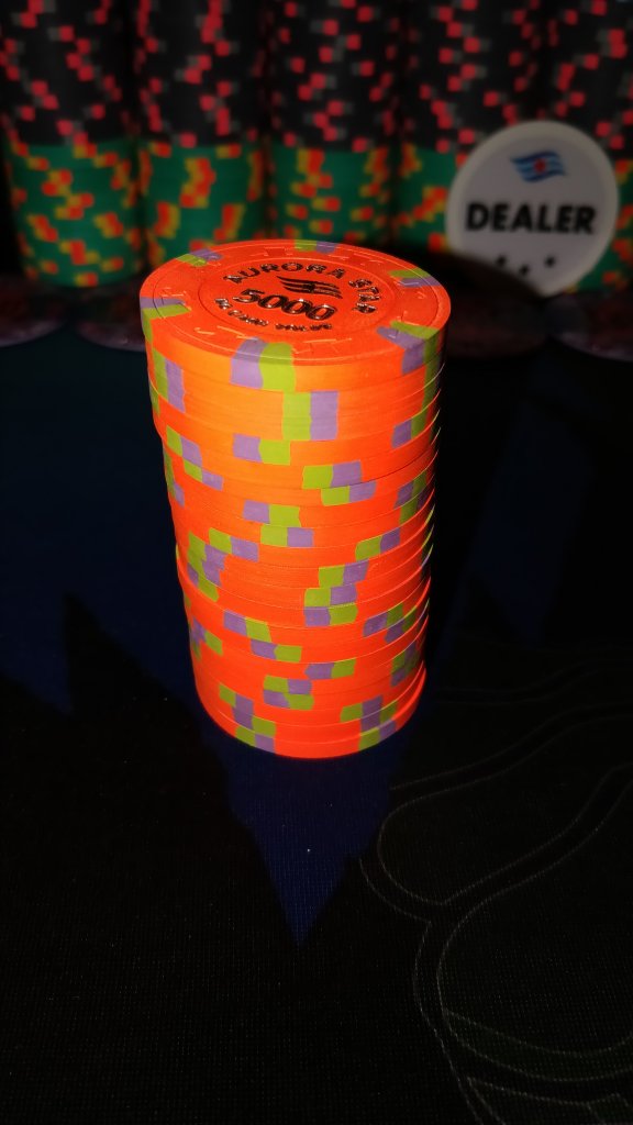 I love the feel, sound and colors! I love how each chip is so distinct. I can't wait to run my rebuy tourney to get the T5000 in play. I took some snaps anyways...because they are so sick...they may even need their own thread...haha!