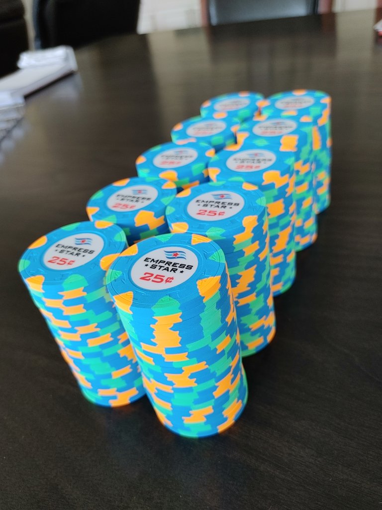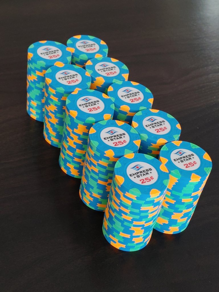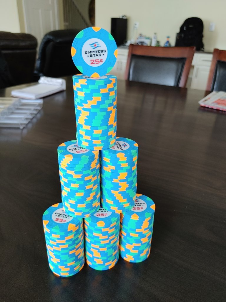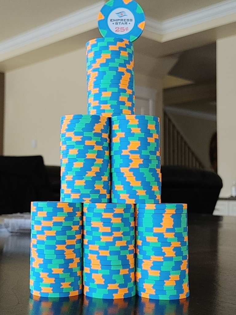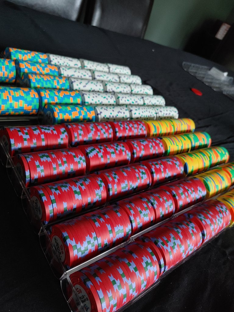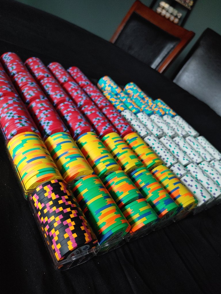 Why put the best spot on a chip that rarely sees play? Oh look, the $100 has a beautiful design, but it will never see play. At least not in the next 10 years, but I built the set to have spot progression and to be "future proof", so I guess we just don't get to see that chip, much less in stacks. Spent a fortune on it though, since that chip had the most elaborate spots. Hope you enjoy the solid fracs though, you will see them every single hand.