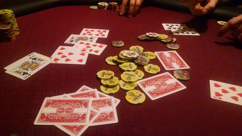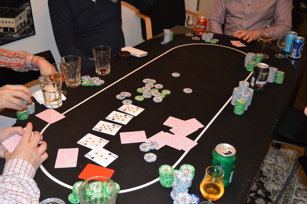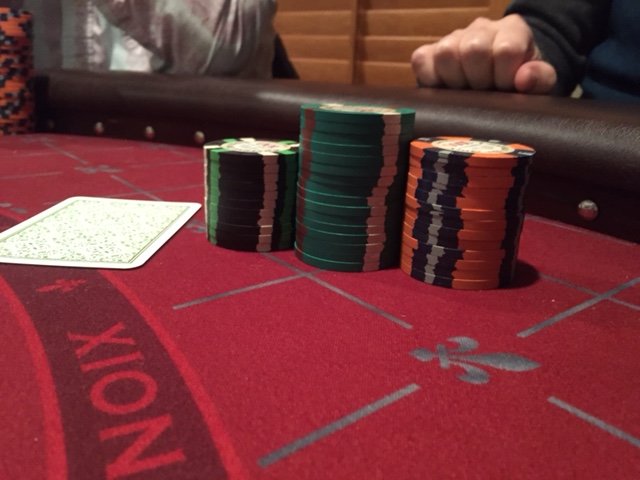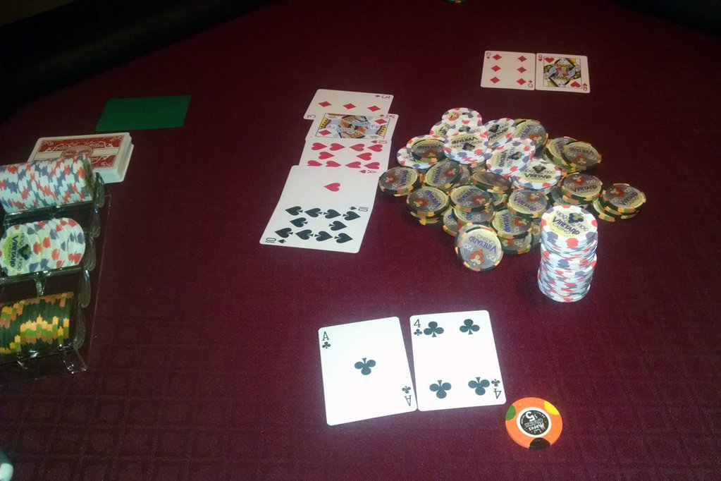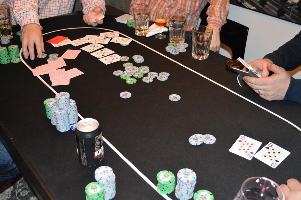 This is about 3 hours into the game, about 30 mins before we switched to dealer's choice with quarter antes.