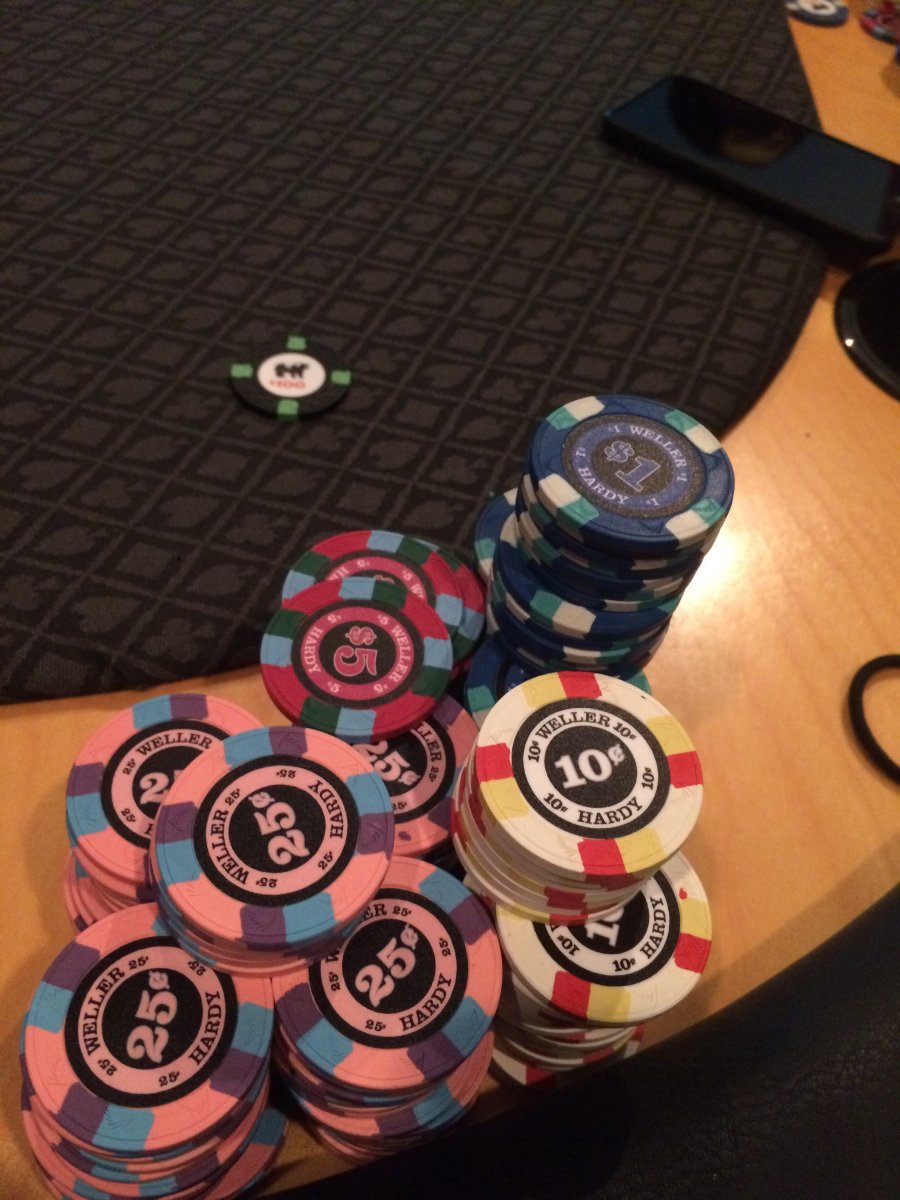 Played a new 25c/50c home game tonight. Asked the host if I could bring chips, I thought he said yes but maybe I misunderstood . . .