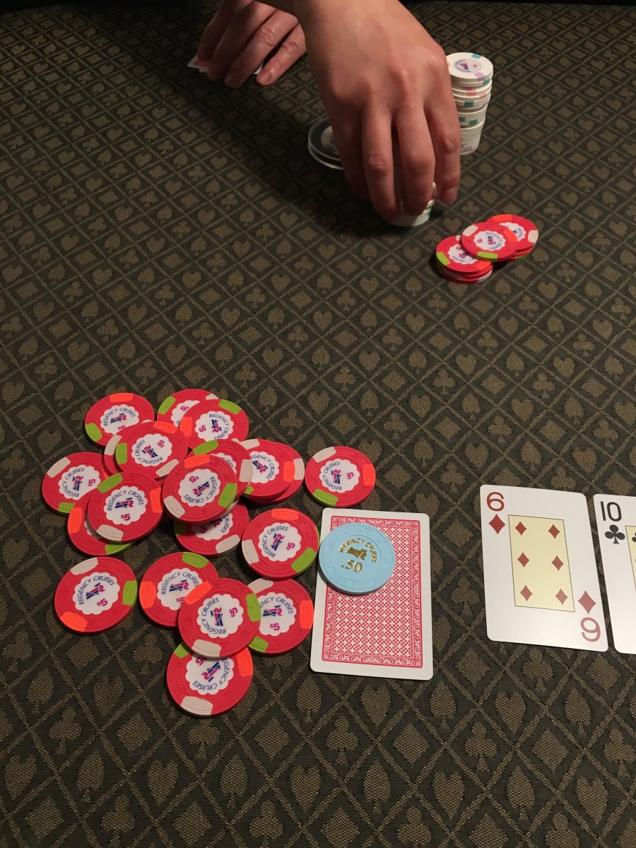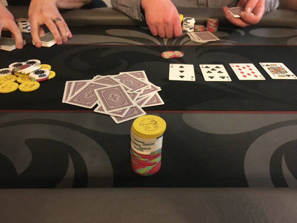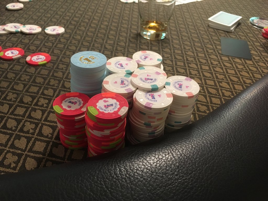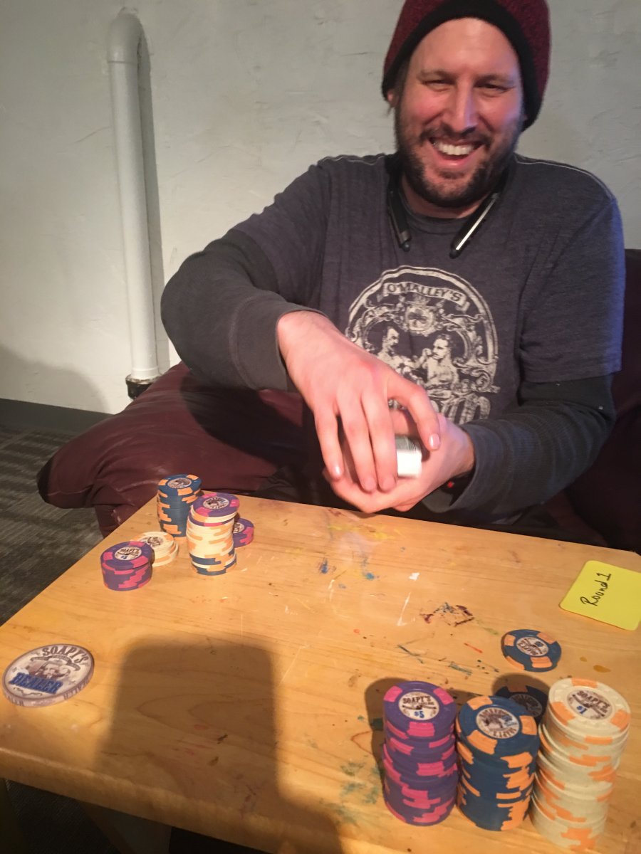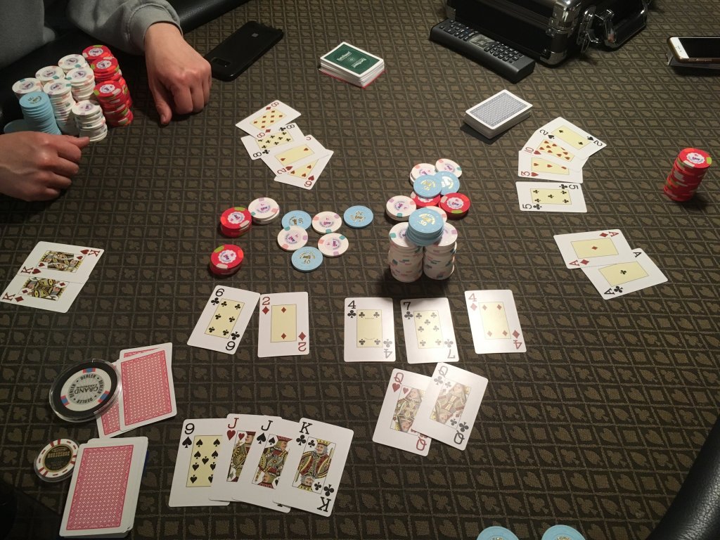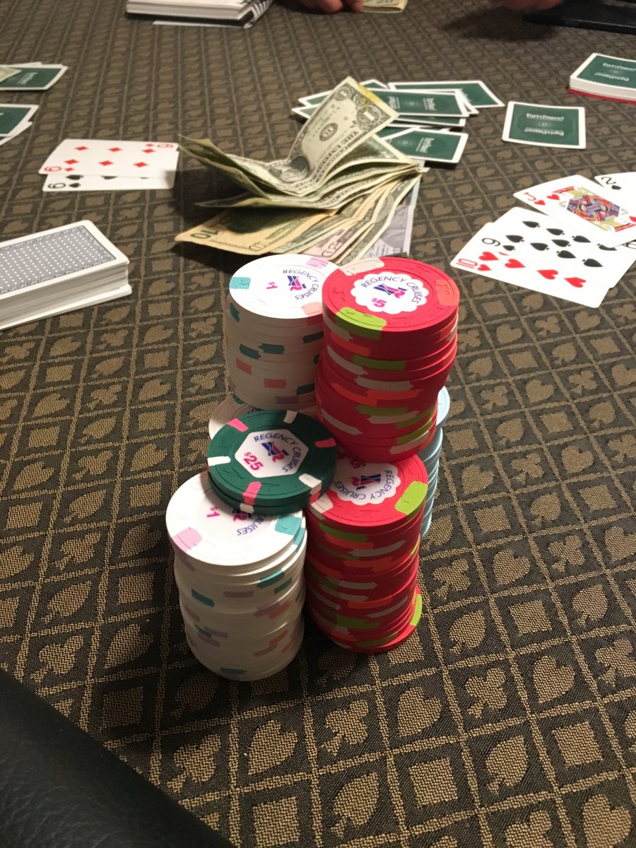 During the heads up cash game (we eventually got to 5 handed dealer choice) we played PLO, but I was always the dealer and he he always got 5 cards. I was up early on as the positional advantage was huge. Had a cooler when we both flopped a straight but he rivered a back door flush.