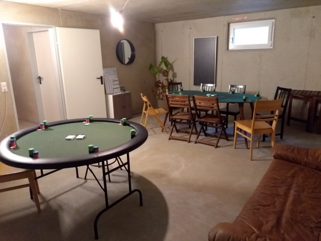 nice room, nice chips! hfglAll ready for the 3rd annual Birthday Poker Bash at casa del pescado. Made a bunch of gulasch soup for dinner and a big cake. Expecting 14 players plus a number of the wives and kids. 25k deepstack with a bounty.
