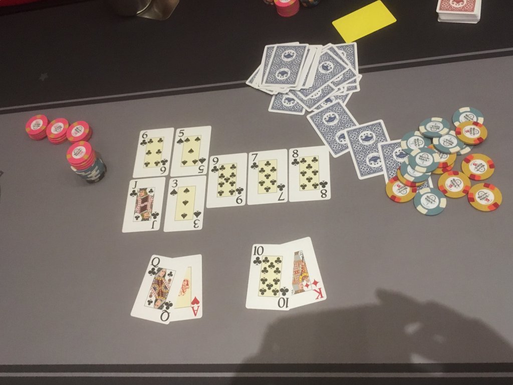 Agreed, great time, @Azcat. Lunch, afternoon cash, tournament, dinner, post-tournament cash... Sorry it didn't work out for you in the chip department, but you are an A-plus host. Even served subs at midnight/1 a.m.