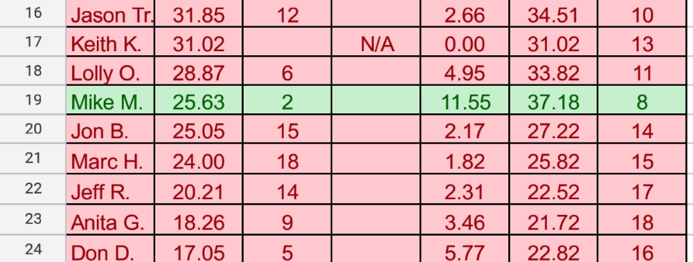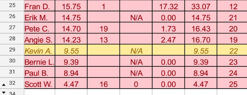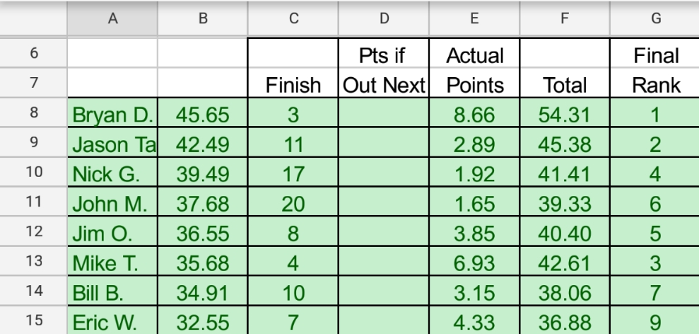 Do you remember who took the 8th/9th spots?