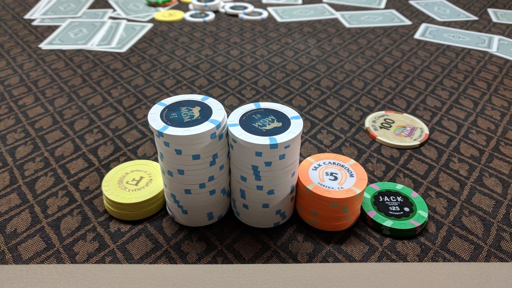 They weren't mine when the game began, but I hope they bought you some rungood after the change of ownership occured.Despite the ball-busting, thanks for hosting, @Sprouty. It was a good time with you, @Boother36, @ChaosRock, @Marc Hedrick, @detroitdad, @Copper44 and @mike32 (and Fran). And thanks for letting us use your chips, @Perthmike!