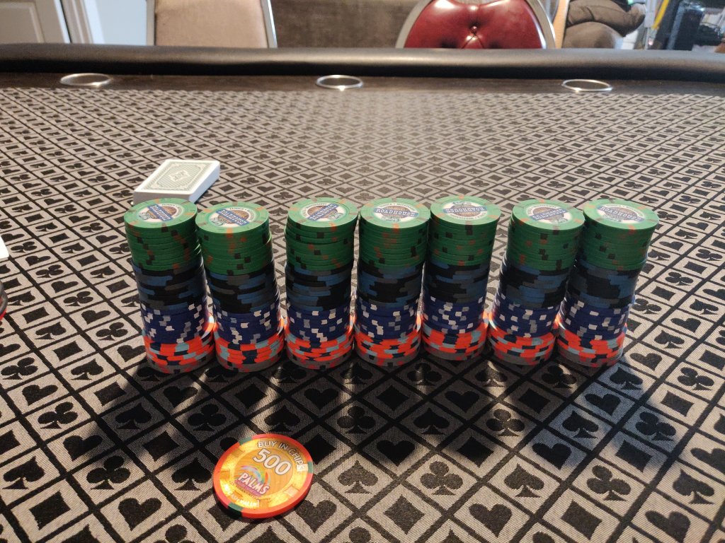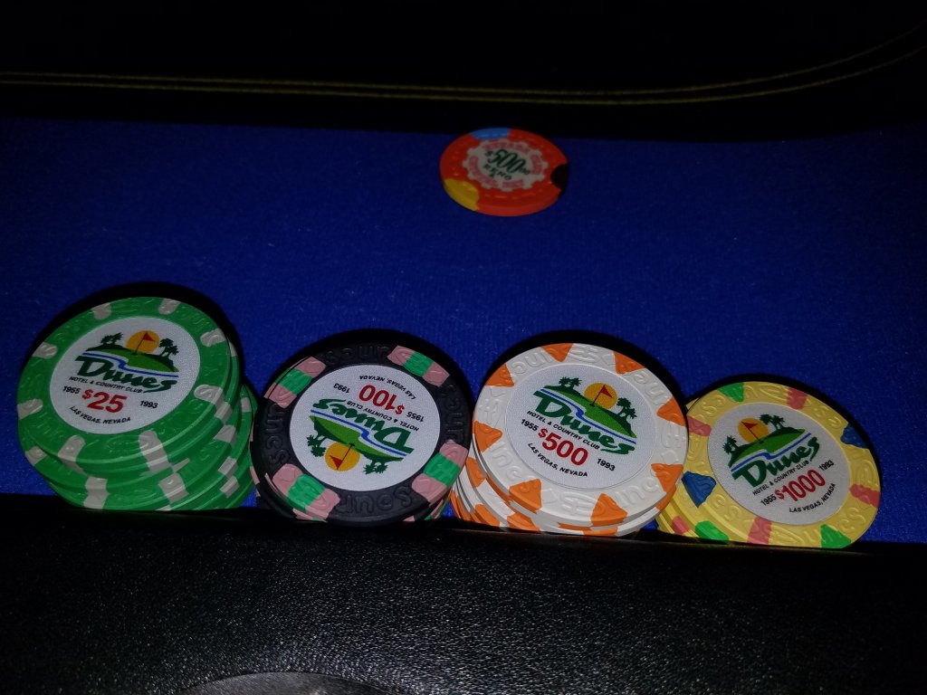 Tonight I am going back to my original mixed set. It has been a long time that all of these chips were on the felt at the same time. It is fun to mix up the mixed set but tonight we go back to where it all started. El Cortez fracs, Spotted Flamingo with birds, Dunes and Sundance chips all back together again.