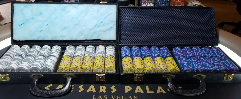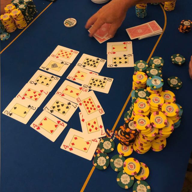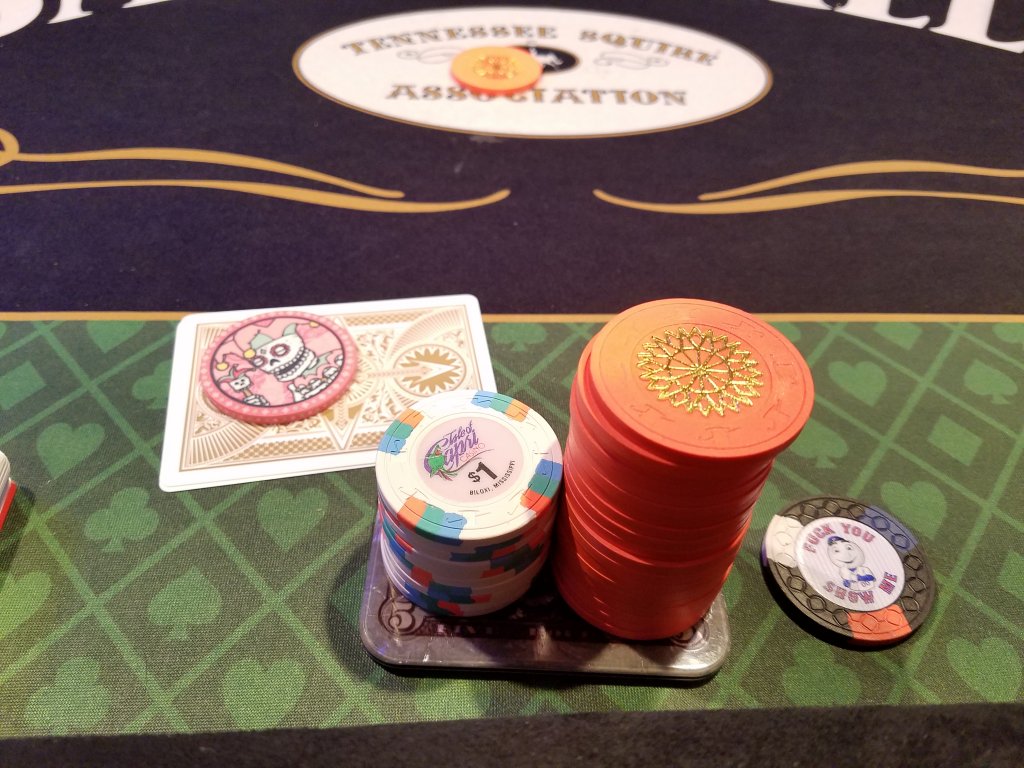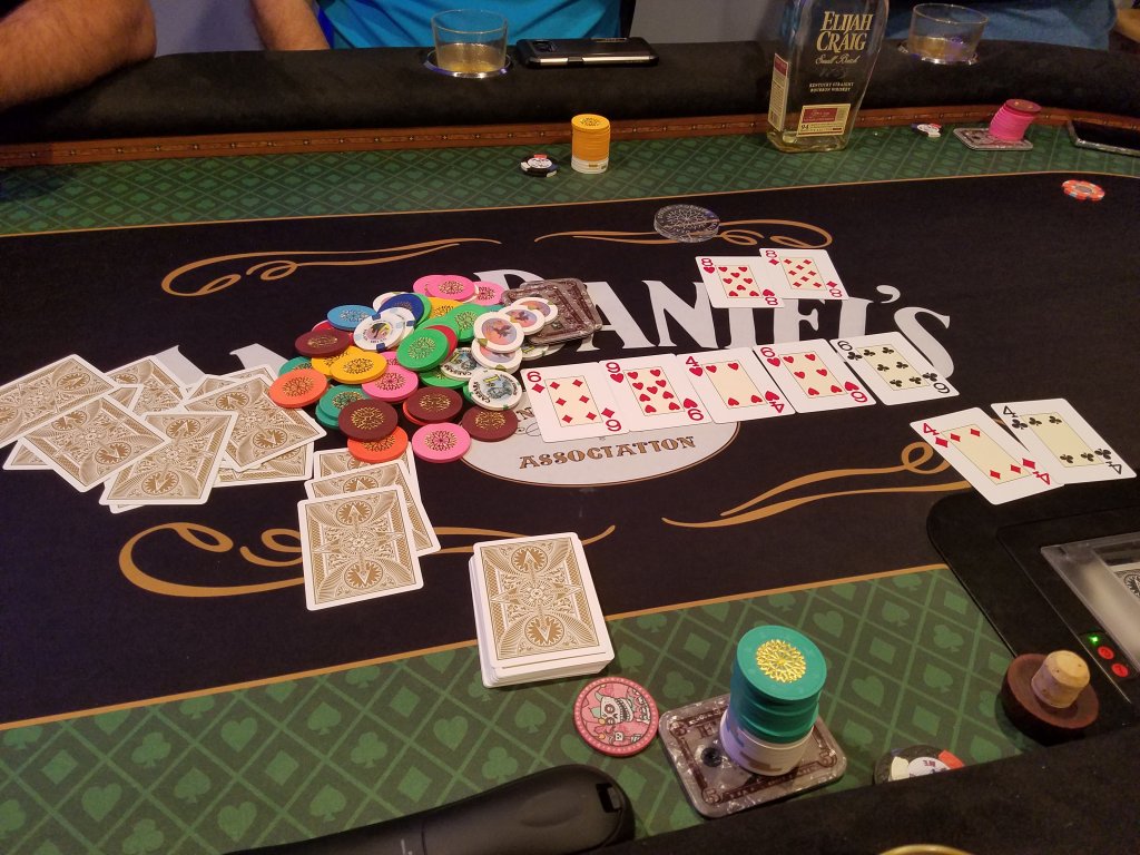 Wed night HO cash game. Don't play here often. Awful chips but a good game. Host is a gearhead and the game is in his shop.