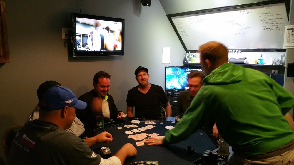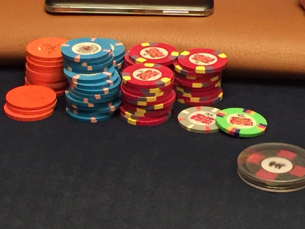 "Las Vegas" slugged chips with white $5's and red $10's + a slick cover on a pool table. The paper cards slide like they are on an air hockey table. But yes, it has been profitable :)