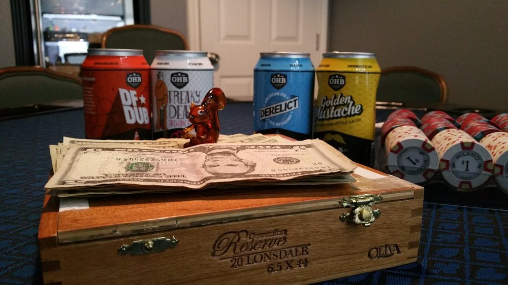 Impromptu cash game tonight. $1/$1 NLHE and Omaha. Changed games every orbit. In less than 2 hours notice was able to get 6 players. 2 of which are the owners of the local brewery. They brought a cooler full of beer. Cashed out $250 ahead. Great time - the glass squirrel has brought me much luck since I picked it up in Italy. I guess the saying about the blind squirrel is true.