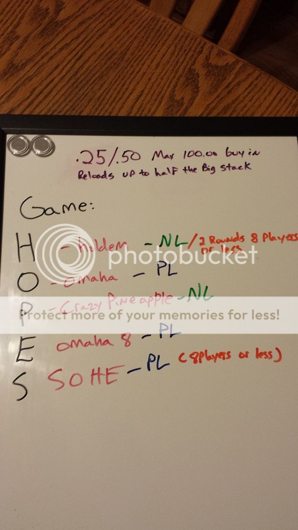 Hosted a .25/.50 HOPES cash game last night. Didn't go well for me. I had a great time none the less.