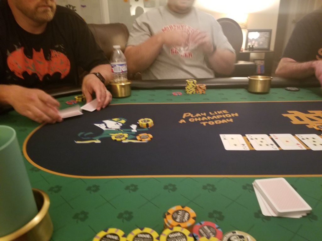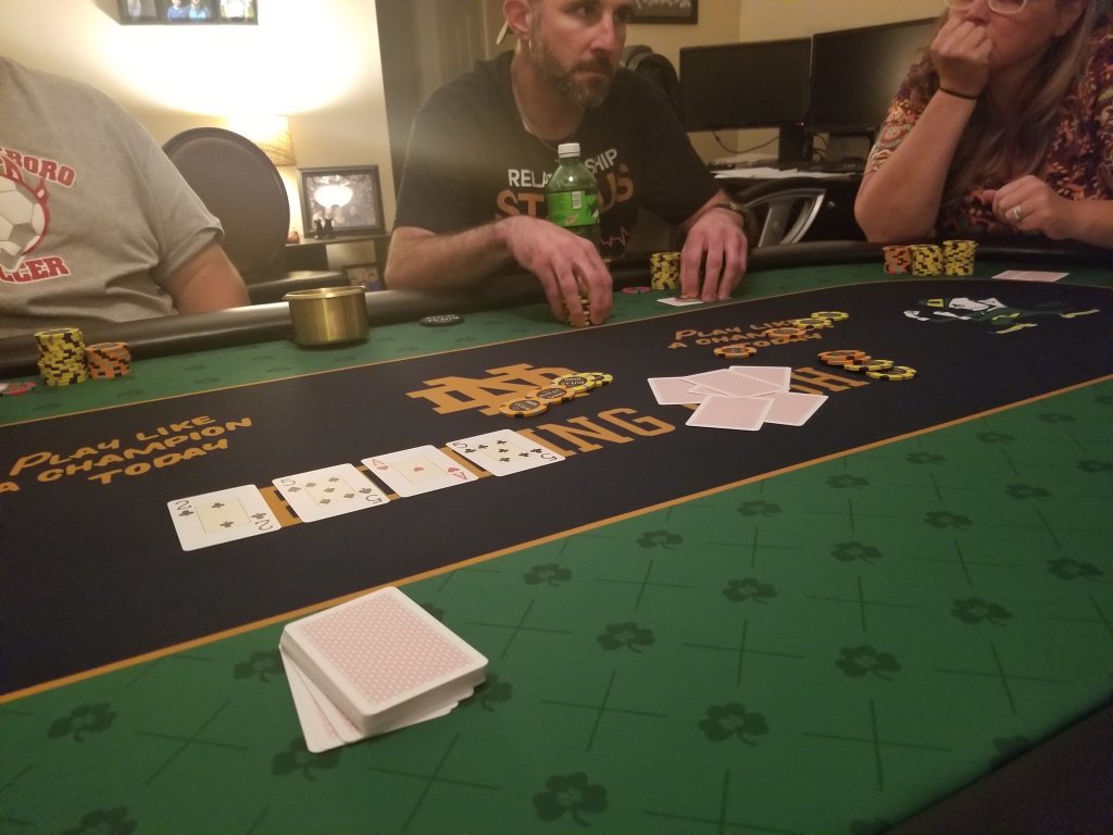 Just started hosting a monthly 25c/50c cash game. This was the 2nd game with 2 new pieces... Barrington table refelted and using the faded spade 2.0's. Big fan of these cards. Very durable and they don't "slide" when you set the deck down. Next upgrade will probably be some royal chips. Now if I could only not book a loss for our November game, that'd be great...