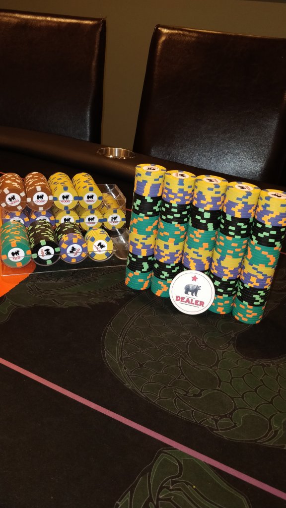 Just led and the $500s really pop! Here are some additional photos. I was fortunate enough to take 1st! Had a great time. Nothing like playing with great crisp chips!