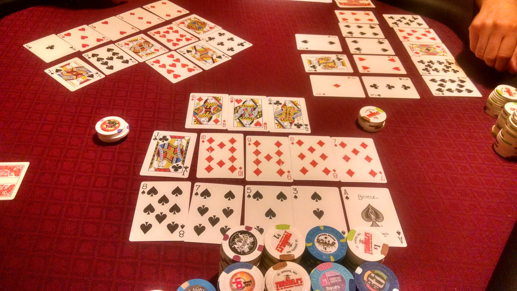 .25/.50 cash 60.00 buy in. Second orbit we had a 4 way AIPF in PLO. I ended up scooping with a flopped 9 high flush that held up.