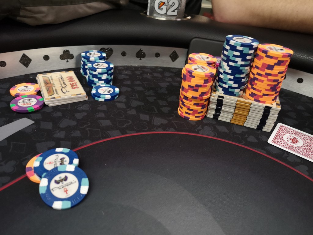 Off to the races! Just a few hands in and I already managed to lose a good amount of chips. C'est la vie.