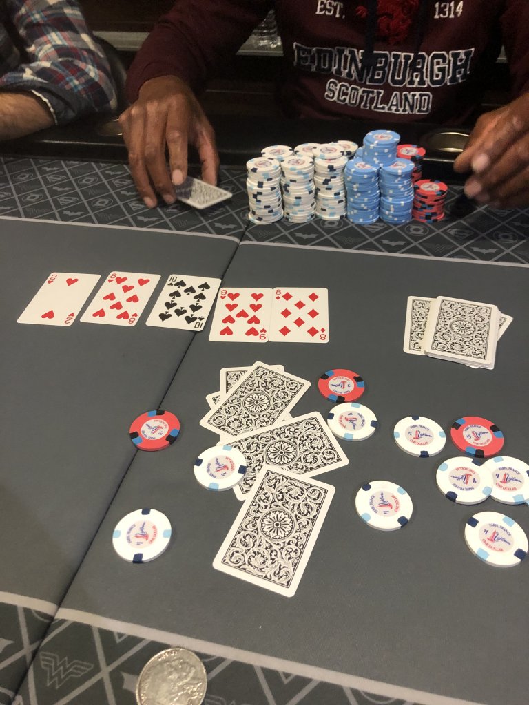 Other group I know of was doing a league night later in the evening, and went over there for their open 10c/20c NLHE cash game. The game was 3 handed but then 5 when a couple people busted form their Omaha tourney.