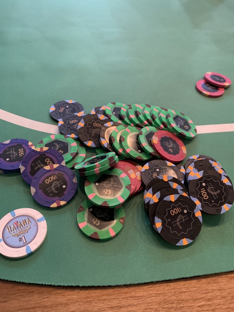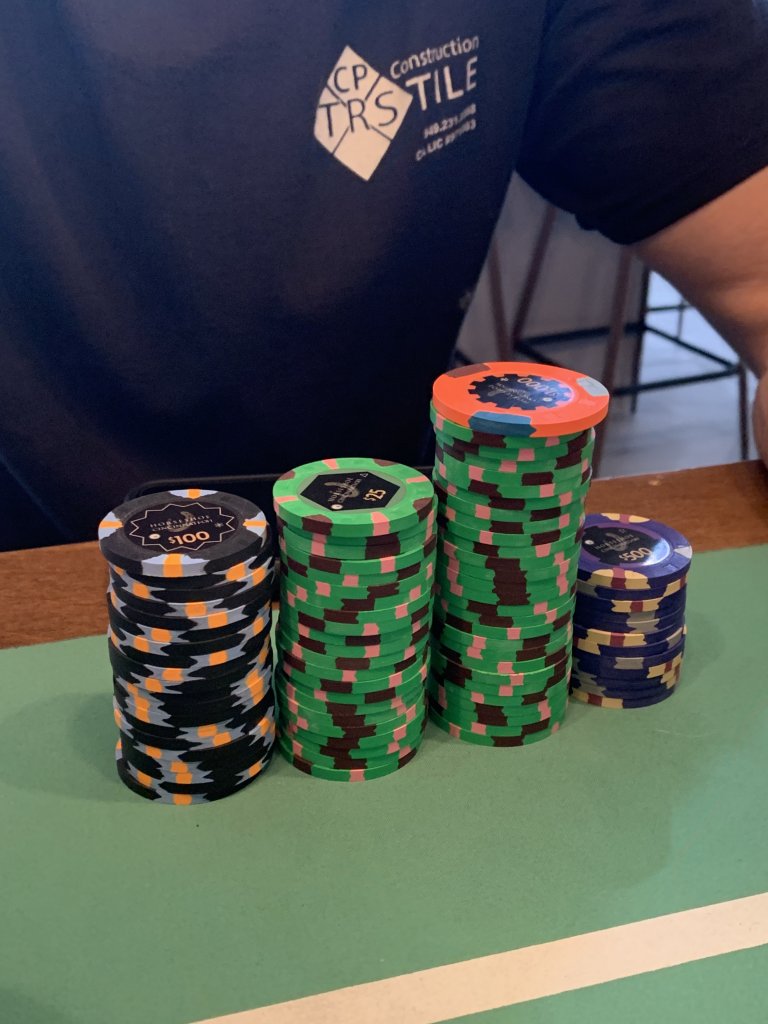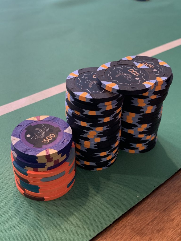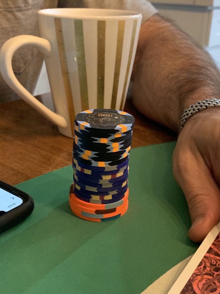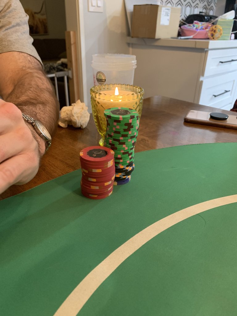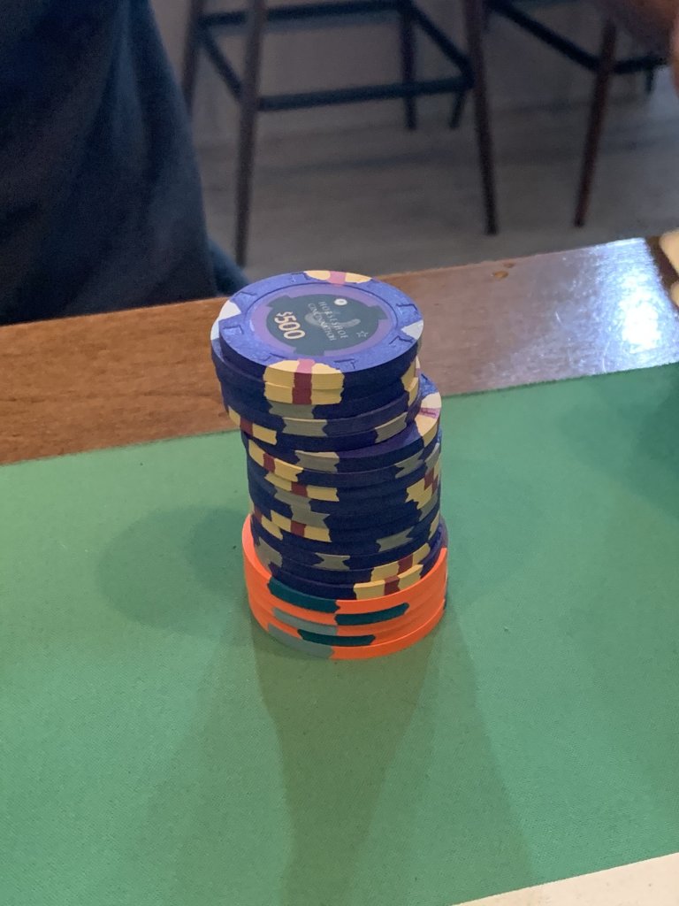 Gross night :vomit:. Had a huge downswing and ended being in for $500. Was down to about $90 at one point and doubled up when I flopped a set of twos against AQ on a Q high board. Had some last minute run good and finished at a little over $400. I would have been steaming all week, lucked out Haha. Forgot to take an end picture but I had three huge towers and it was dope.