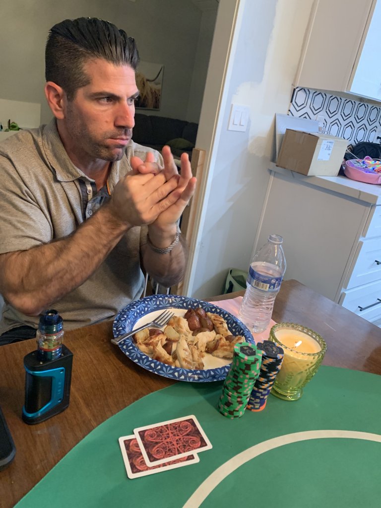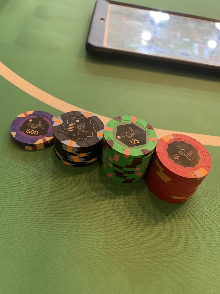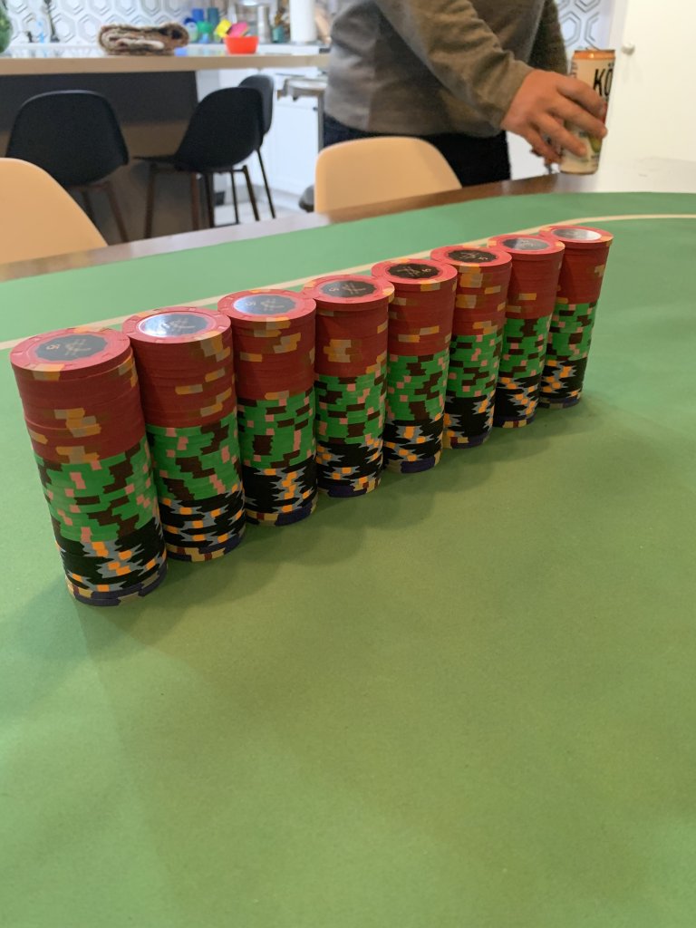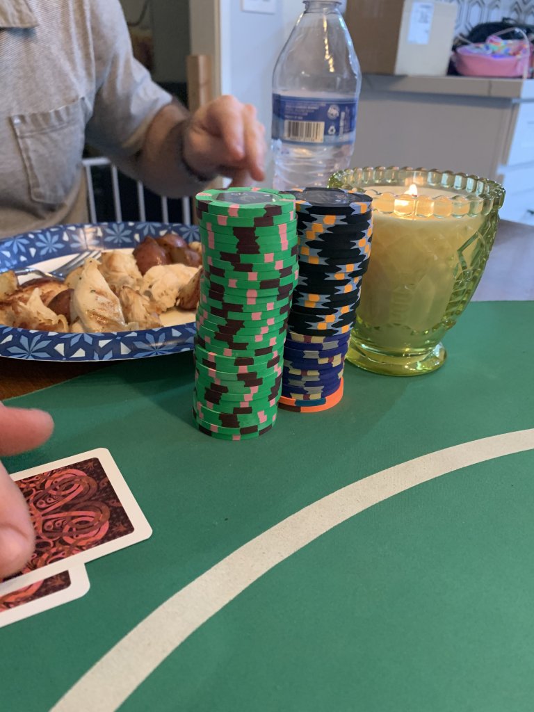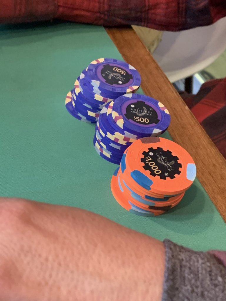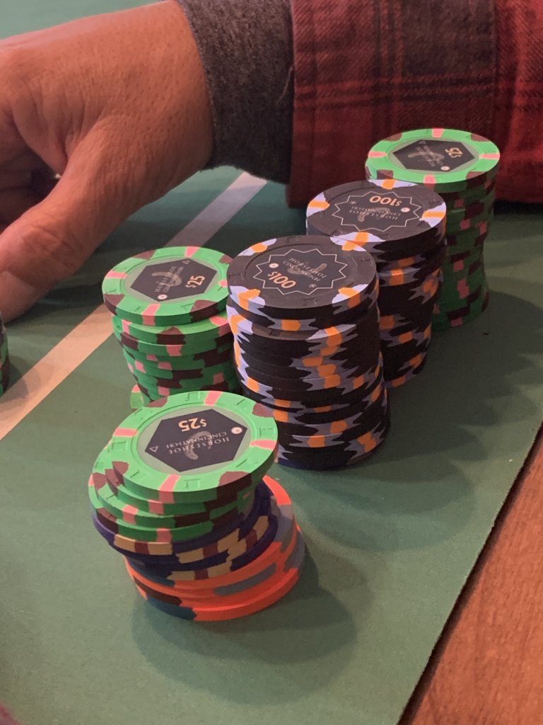 Gross night :vomit:. Had a huge downswing and ended being in for $500. Was down to about $90 at one point and doubled up when I flopped a set of twos against AQ on a Q high board. Had some last minute run good and finished at a little over $400. I would have been steaming all week, lucked out Haha. Forgot to take an end picture but I had three huge towers and it was dope.