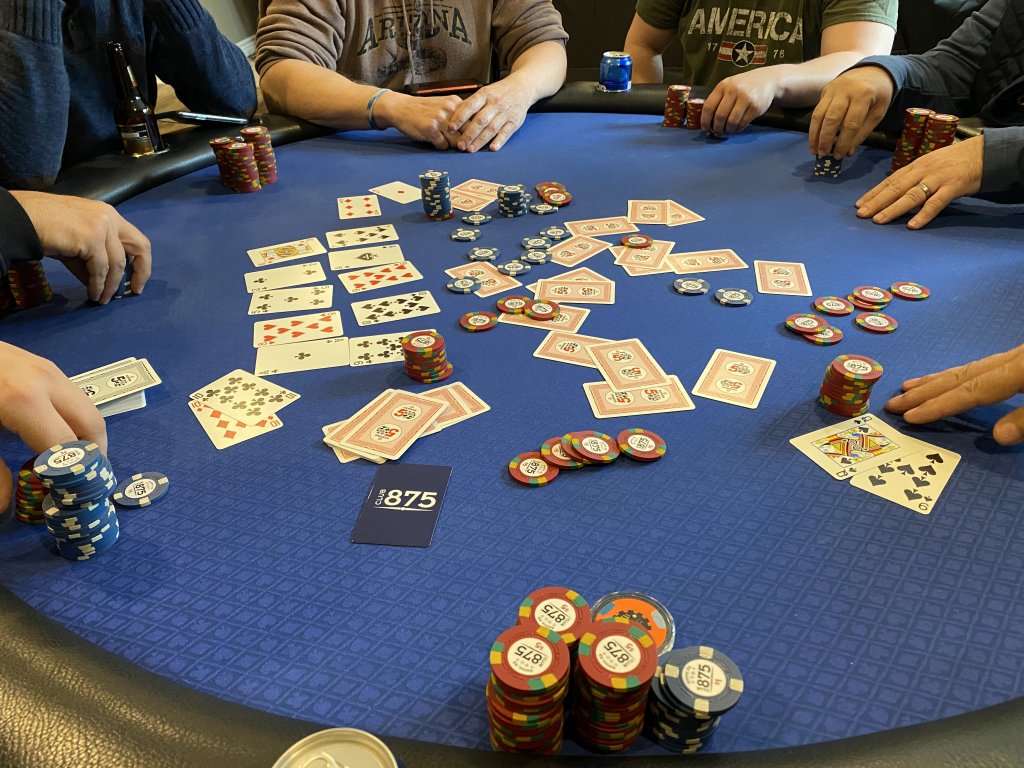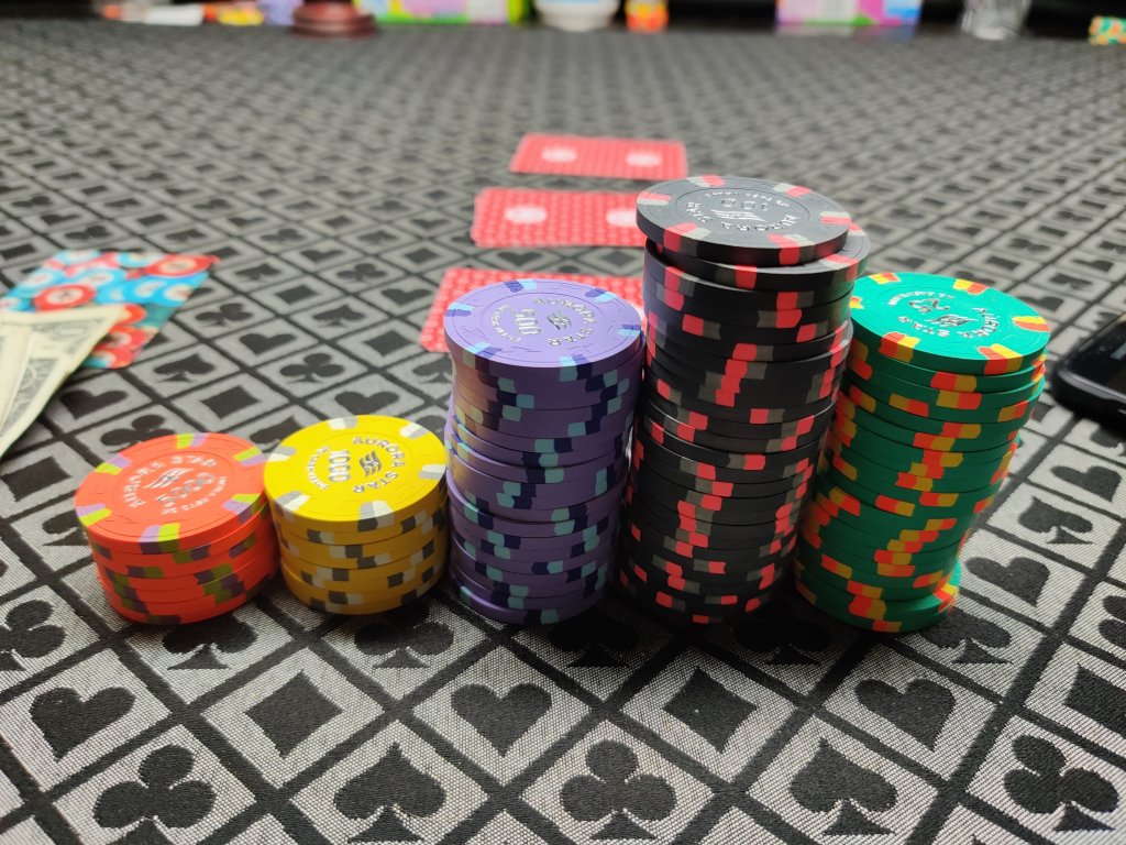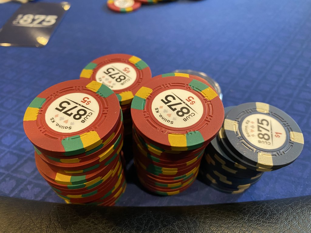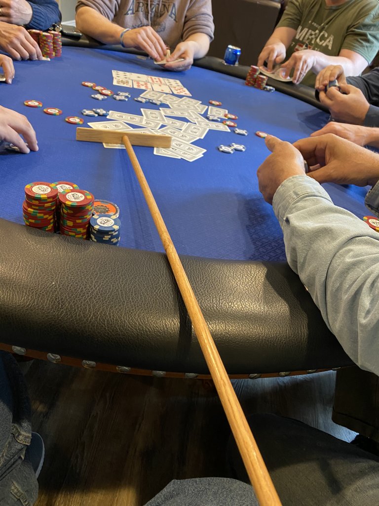 I made two croupier sticks but didn’t use them much.Sunday cash game. 66” round table i built for the host about 12 years ago. Club 875’s in play.