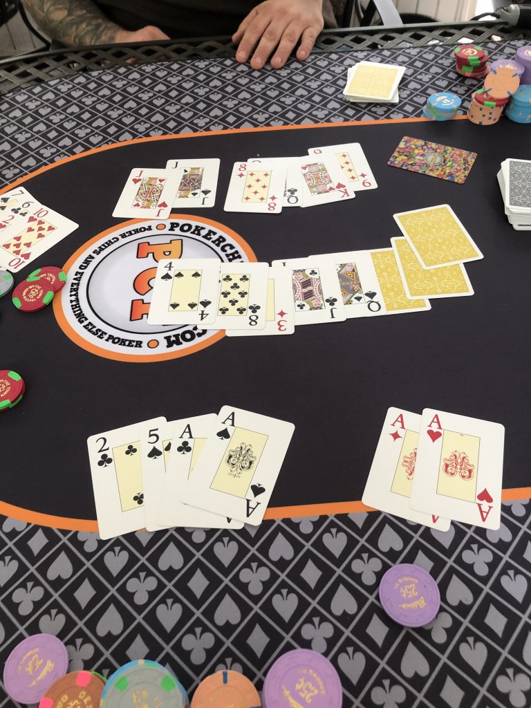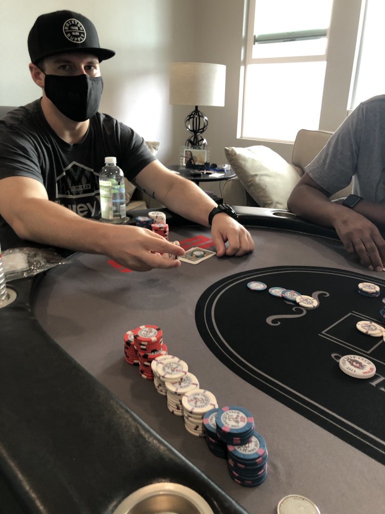 I don't at all mean to sound like a smart ass in saying this, but keep us updated if you or anyone else you come into contact with get sick within the next two weeks or so. I am interested to see if wearing a face covering is sufficient to contain spread of the virus in a small (5-7 player, which is usually what I have anyway) game. If everyone ends up being clear, I would feel lots better about considering hosting in the next few weeks.Had some crazy hands play out today against @Ben8257. In this one, I can’t think of a better starting S.O.H.E. hand. Turns out I would get both sides of it cracked, but wow what a beauty to look at pre flop.![]()