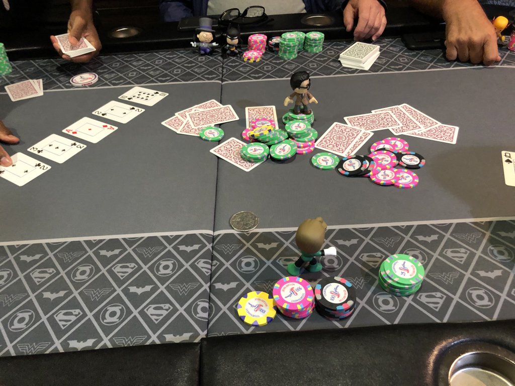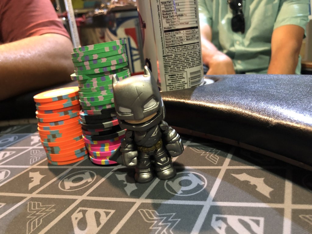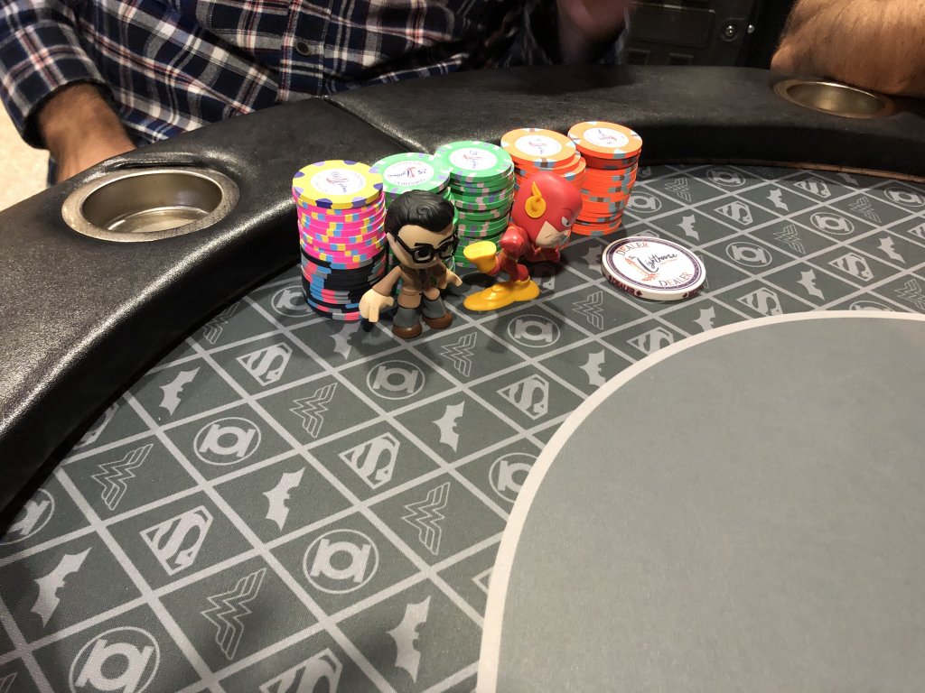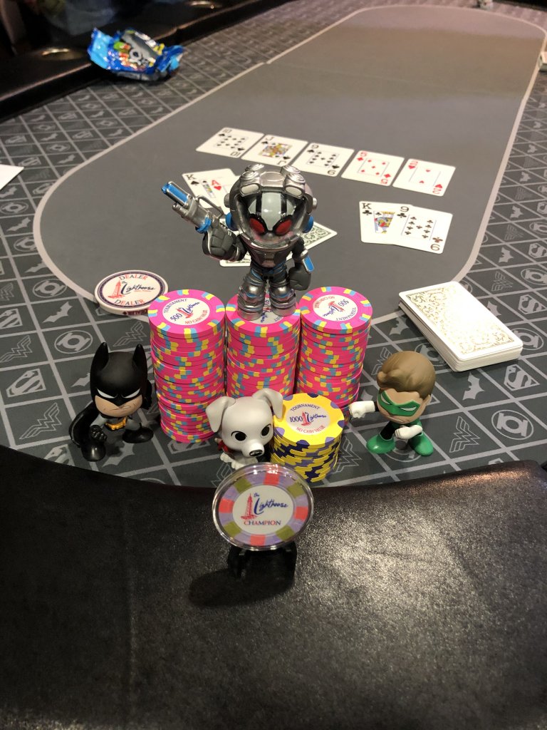 I hosted our league finale tonight. Used superhero/villain figures as the bounty. Mark took it down with Mr. Freeze protecting his stack. @WhiteMamba1646 chose the flash and was the fastest one to bust...