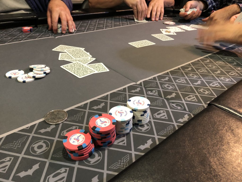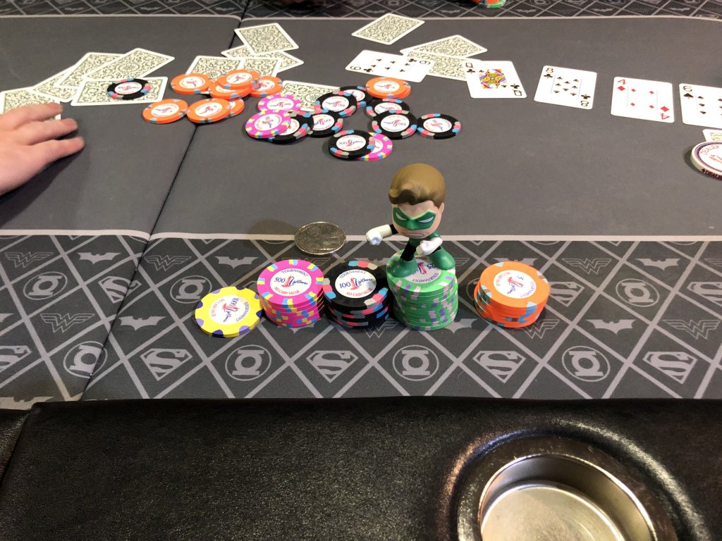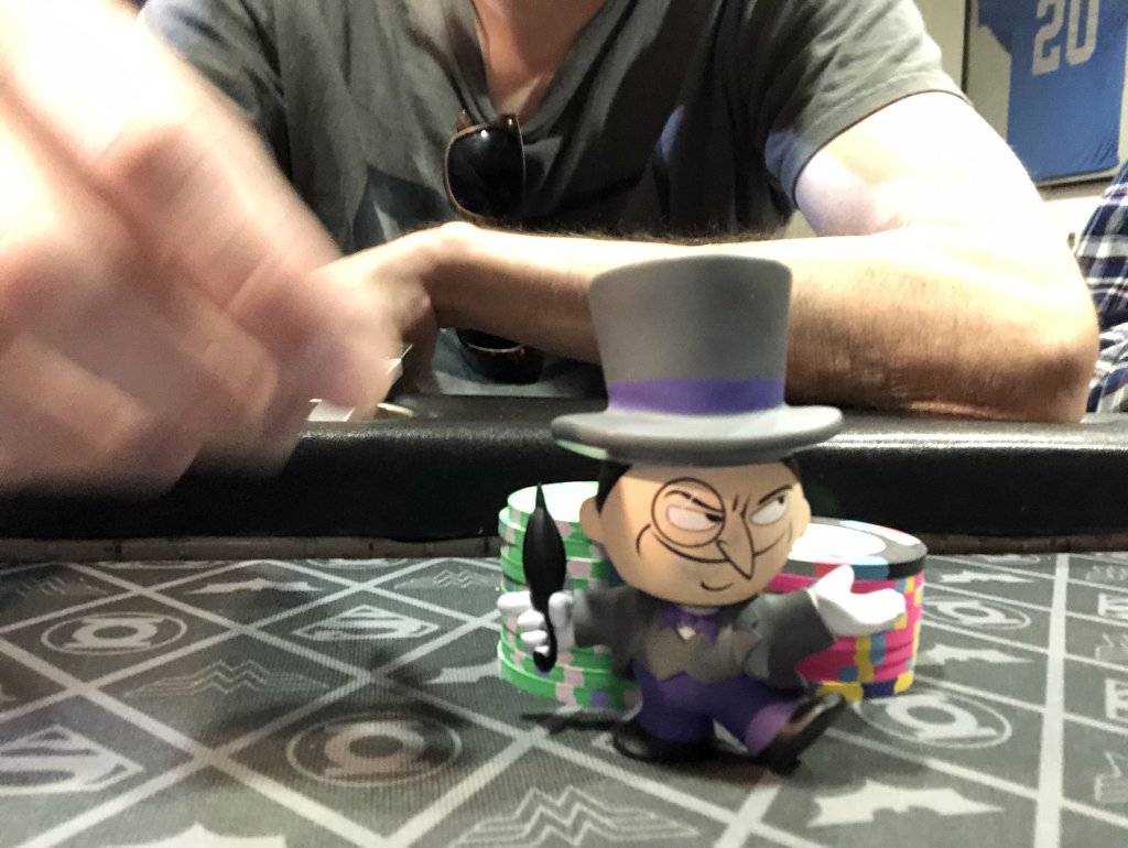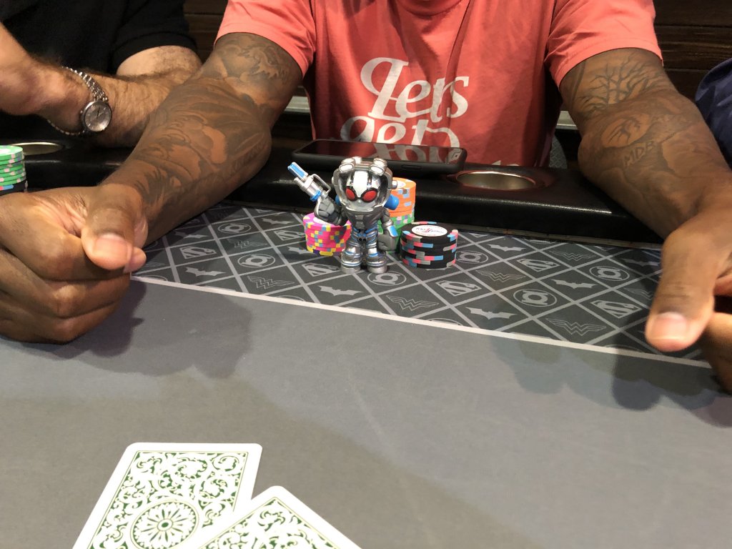 I hosted our league finale tonight. Used superhero/villain figures as the bounty. Mark took it down with Mr. Freeze protecting his stack. @WhiteMamba1646 chose the flash and was the fastest one to bust...