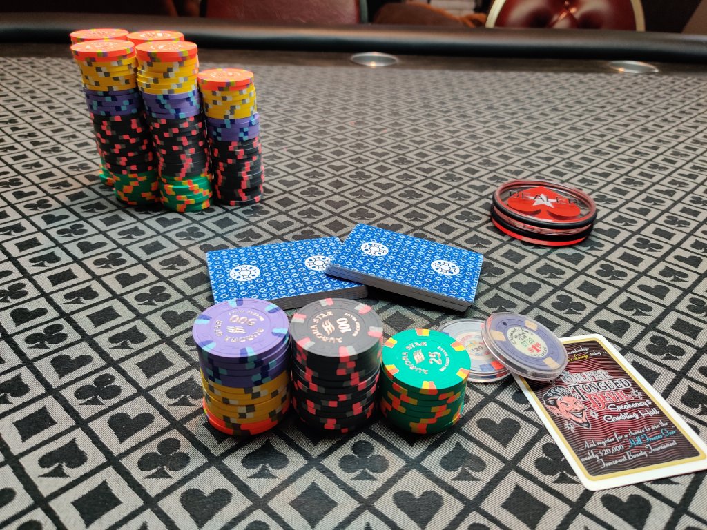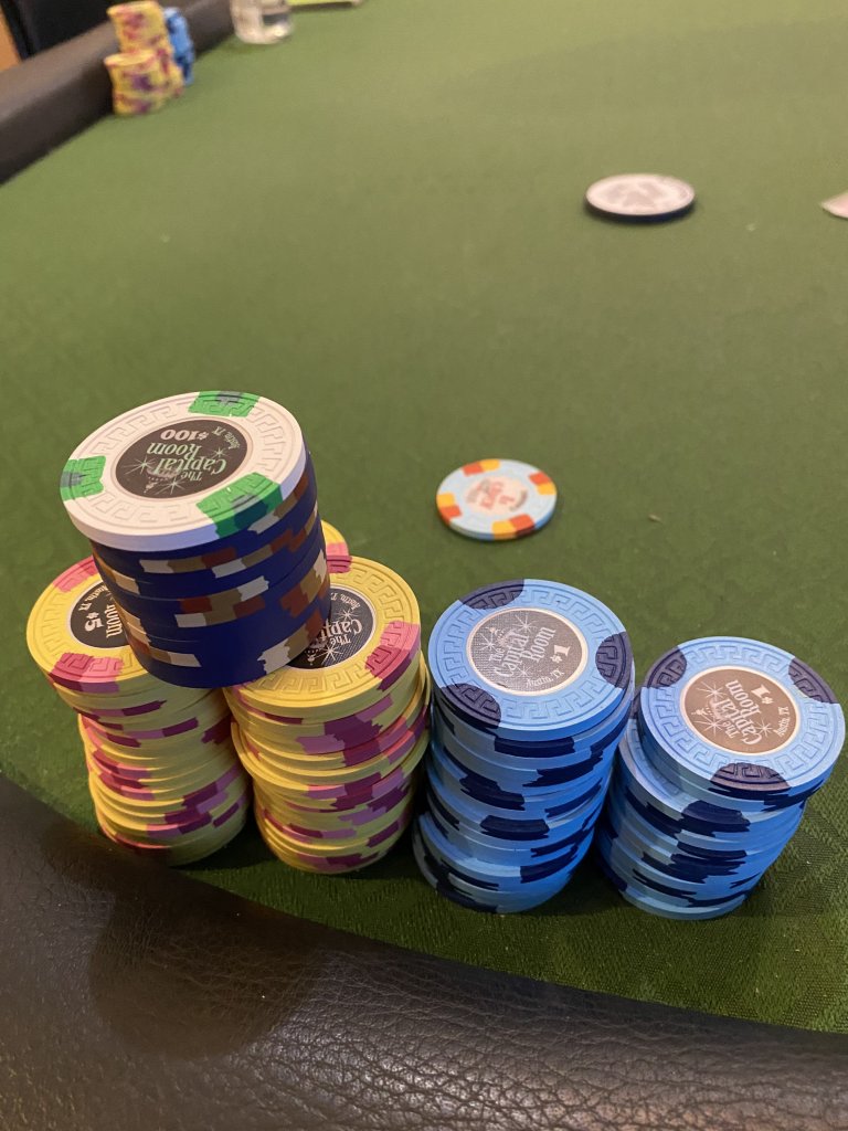 You should upgrade those chips. Maybe something ceramic.......From last night. Ran like absolute dog sh!t, but cheeseburger stakes so it's always fun. 6-handed .25/.25, followed by UFC 252.