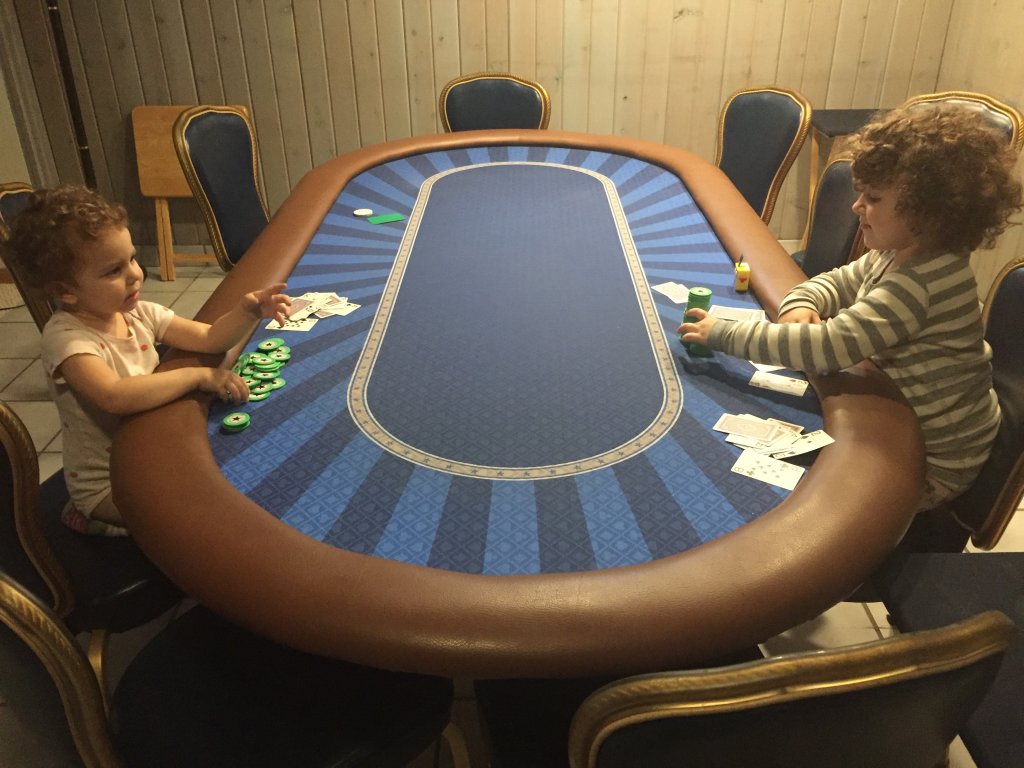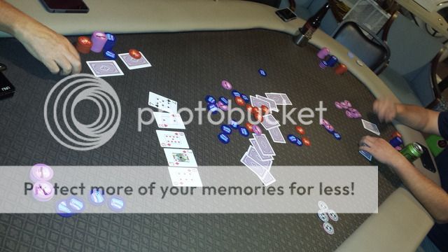 Lol, they haven't graduated to the good chip. They get to play with some well used roulette chips that I don't care if they beat up even more.