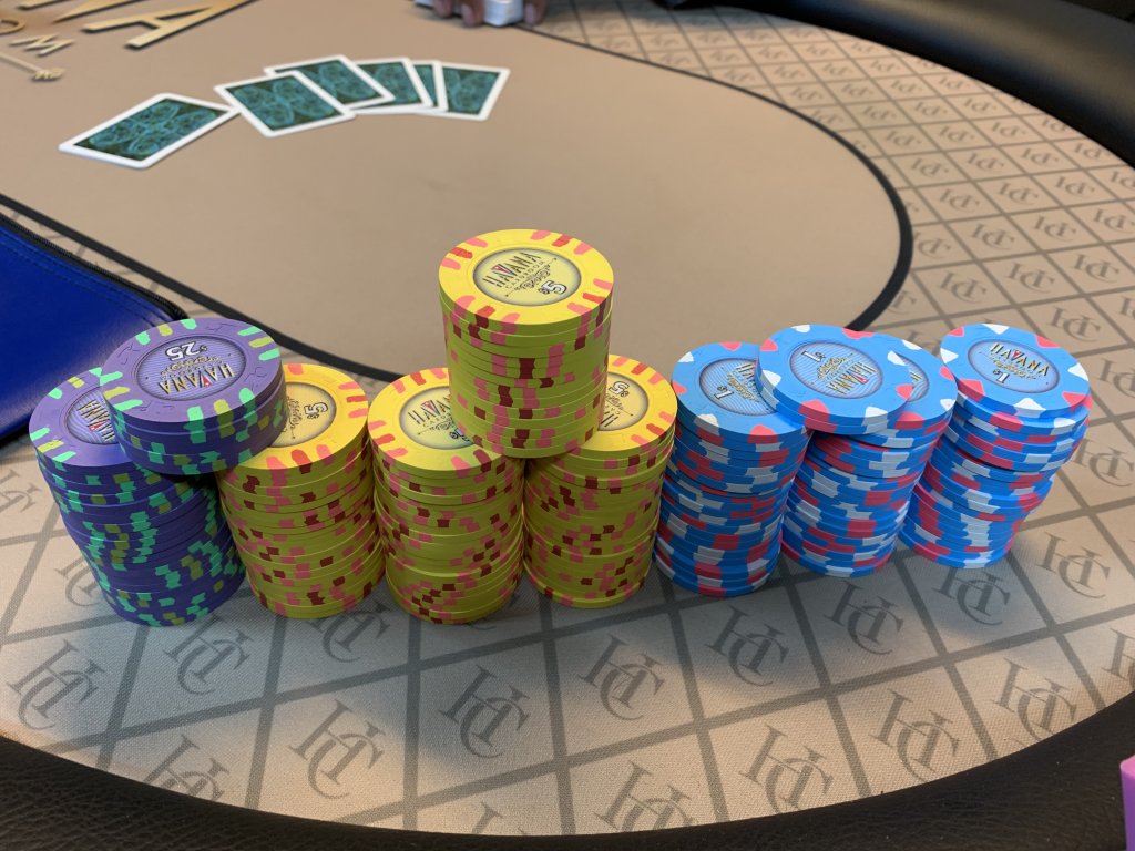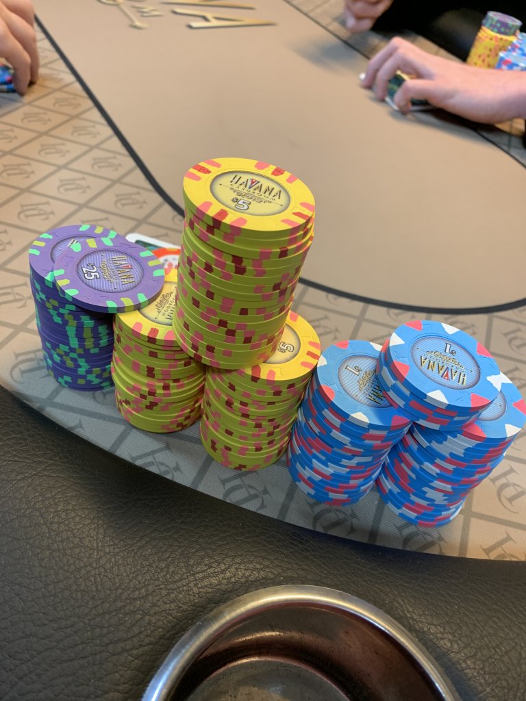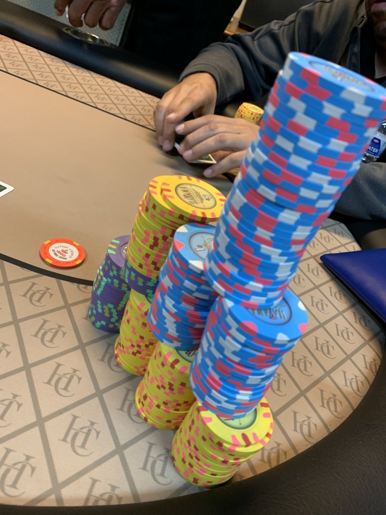 Great chips but what I really noticed in this pic is that it looks like everyone would rather have the drink holders in front of them. Guy on left is hurting the underside of his forearm, guy in middle is using the cup holder that is for the adjacent spot because his betting arm would be hitting his drink otherwise and the guy on right is barely on the rail because he is trying to avoid the cup holders on the sides. LOL