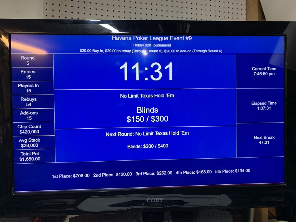 15 players and 54 rebuys???54 rebuys! Lol i took 8th and was in for $100 out for $0, cash game in for $300 out for $330. Did some scratcher pots throughout the night too which was fun. @wonderpuddle seemed to win almost all of the scratchers haha