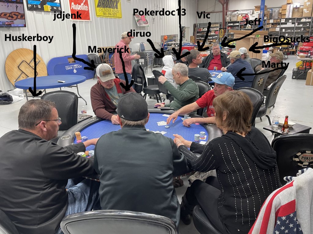 Pokerdoc is the on the front table with his head turned. Treebark lives in Missouri so too far to drive.