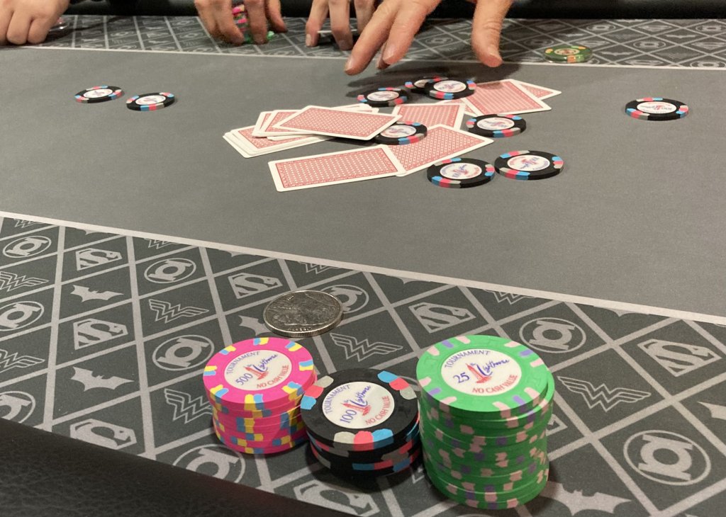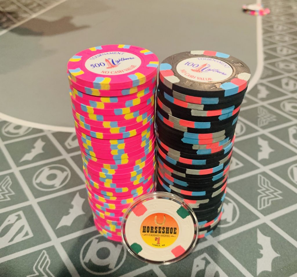 First time we’ve played with a $10 chip since Krish busted out the giraffes at @Windwalker ’s initial PCF game and I have to say, I really like playing with a purple $10. Obligatory flashback Friday pic: