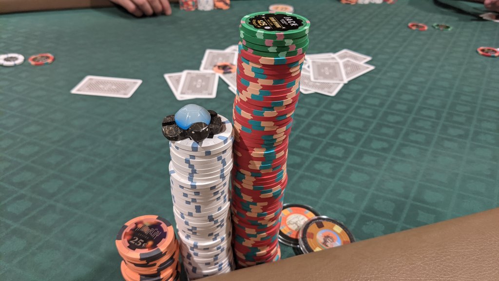 Saturday afternoon game, marking @MIZ's return to live poker for the first time since February 2020. @Grandmasturkey and @Chester Copperpot also at the table. Aurora Stars in play.