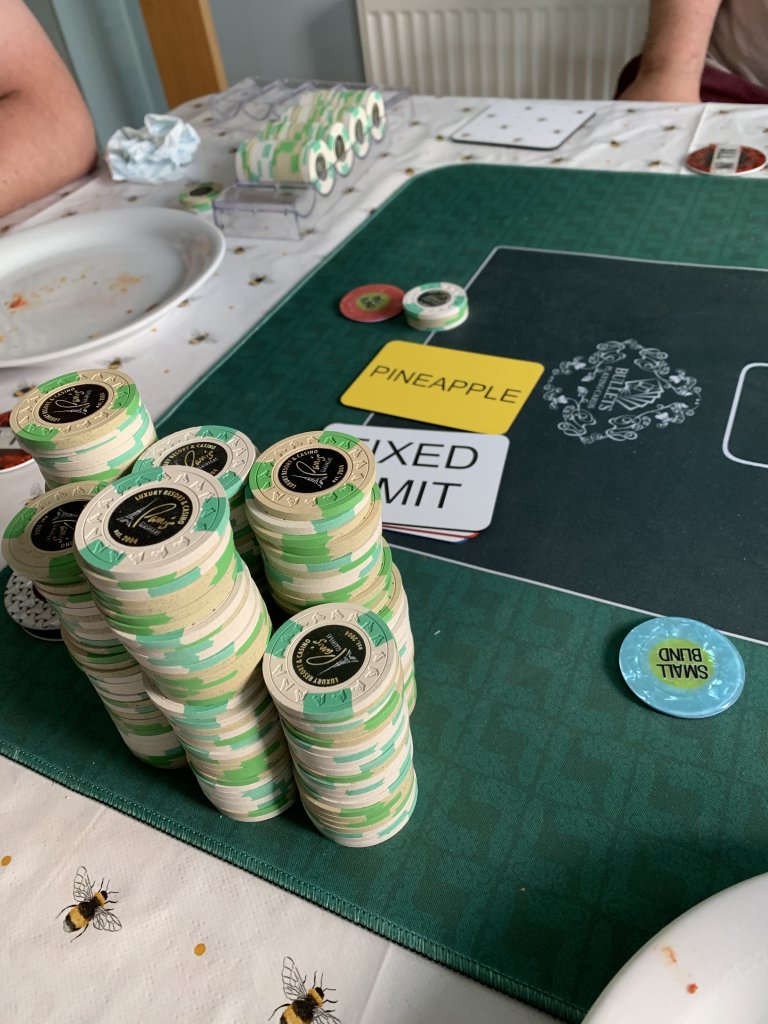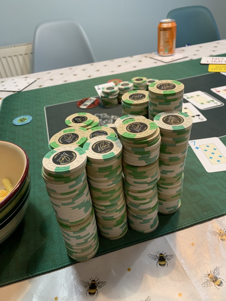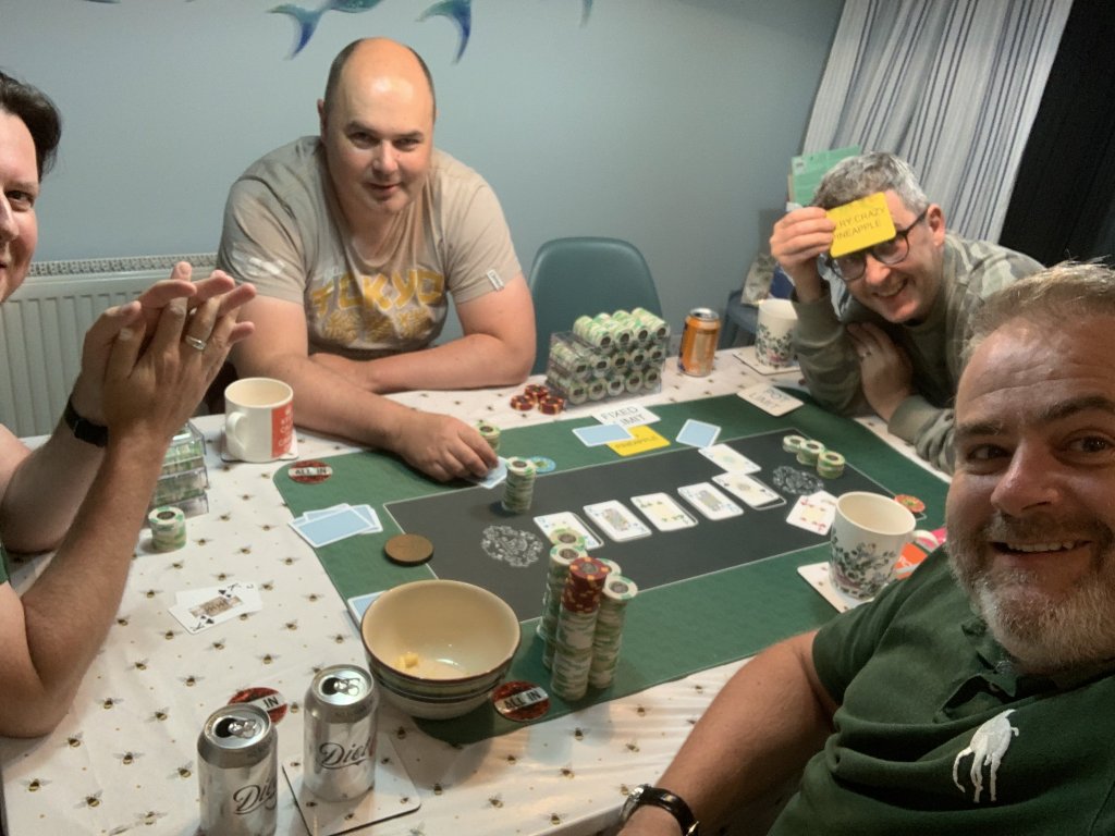 Lots of talking and catching up as we hadn’t seen each other in 18 months so not a lot of poker. Great night regardless and for a change everyone was driving so no drinking!!! Probably the most obscene joke I have ever heard that made me think I’d broke a rib from laughing so hard.