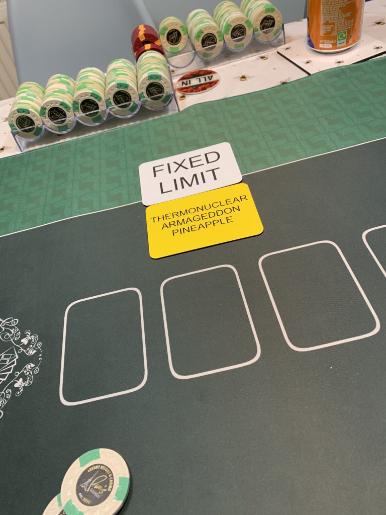 My mate hosted so I took my travel mat and half of my limit set over. We played the following games for 2 rounds of the button each.