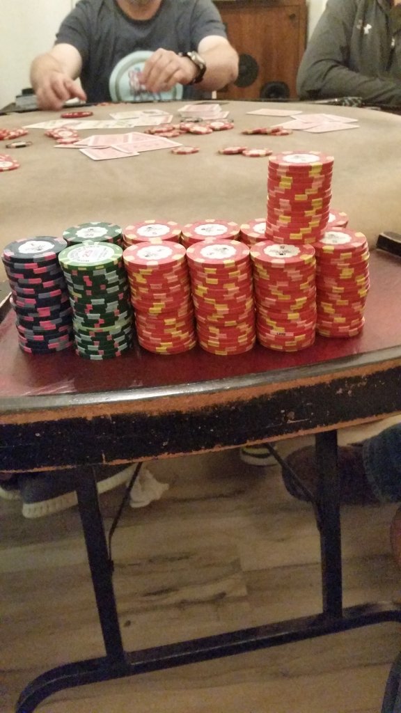 Don't mind the shove with AK...that's the exact spot that got me busted last time, AK shoved into 66, his 66 held. But man, getting there after the dude flopped a set - poor guy! LOL.Pics from last night’s game. I managed to take down the tourney, thanks in part to a crazy suck out — I had AK and called a shove by 66. Flop came 633. But I hit runner runner KK for a better boat to knock her out.