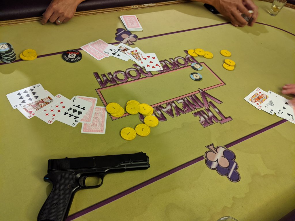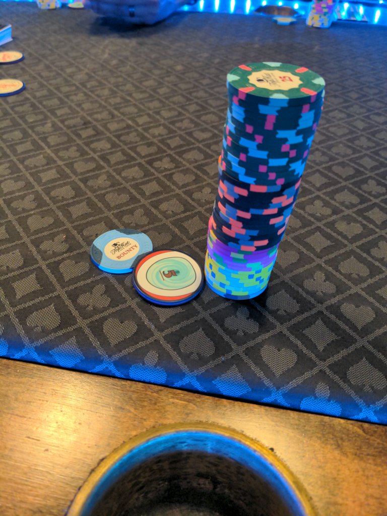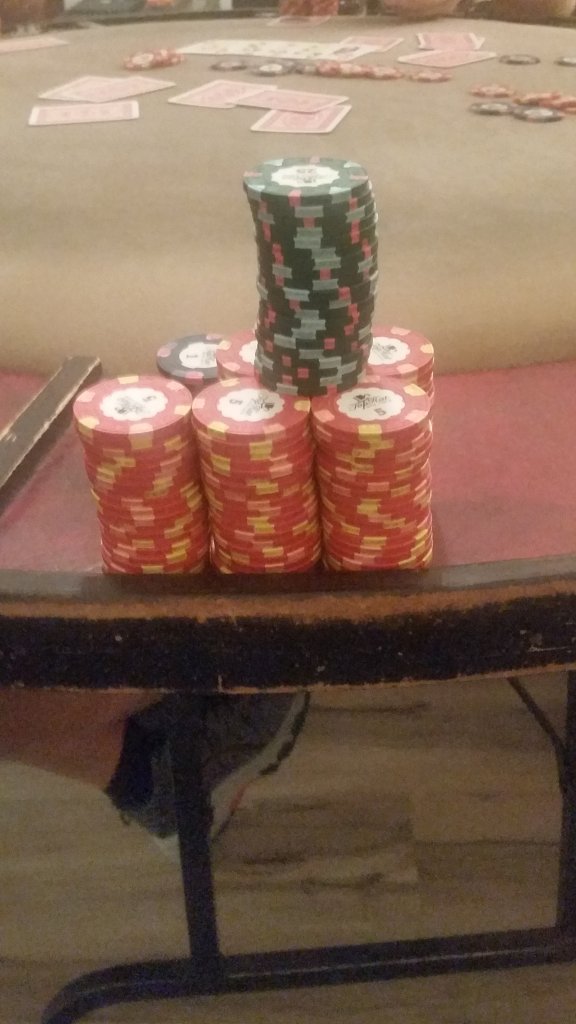 Game broke at twenty minutes to midnight. Three players wanted to continue playing against Hero. Hero, being the good sport, obliged. Hero added another $250 to his stack by 1AM. In for $250, out for $2010.