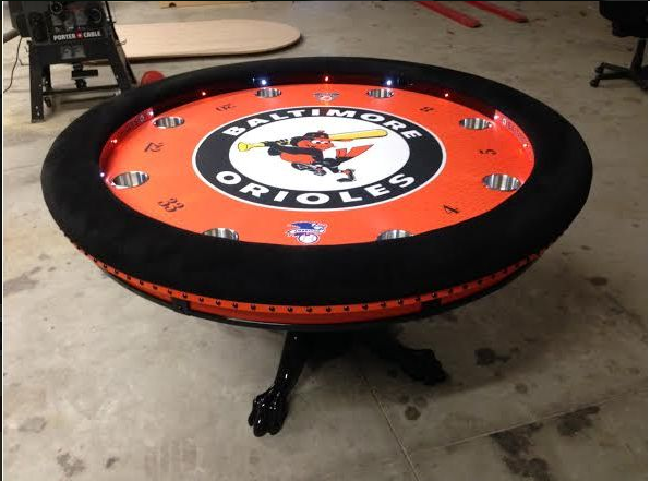 Here's some pics of my Cardroom. We converted the basement to a Poker Room. We're huge Sports fans and since 94% of our players are Baltimore sports fans, well the colors took care of themselves.