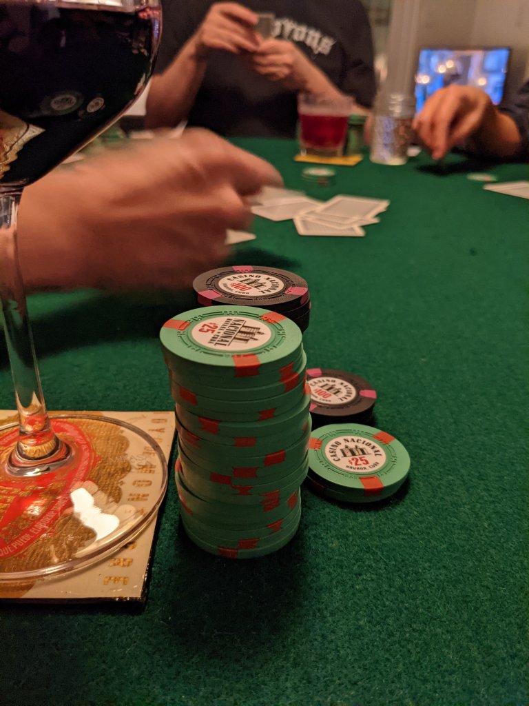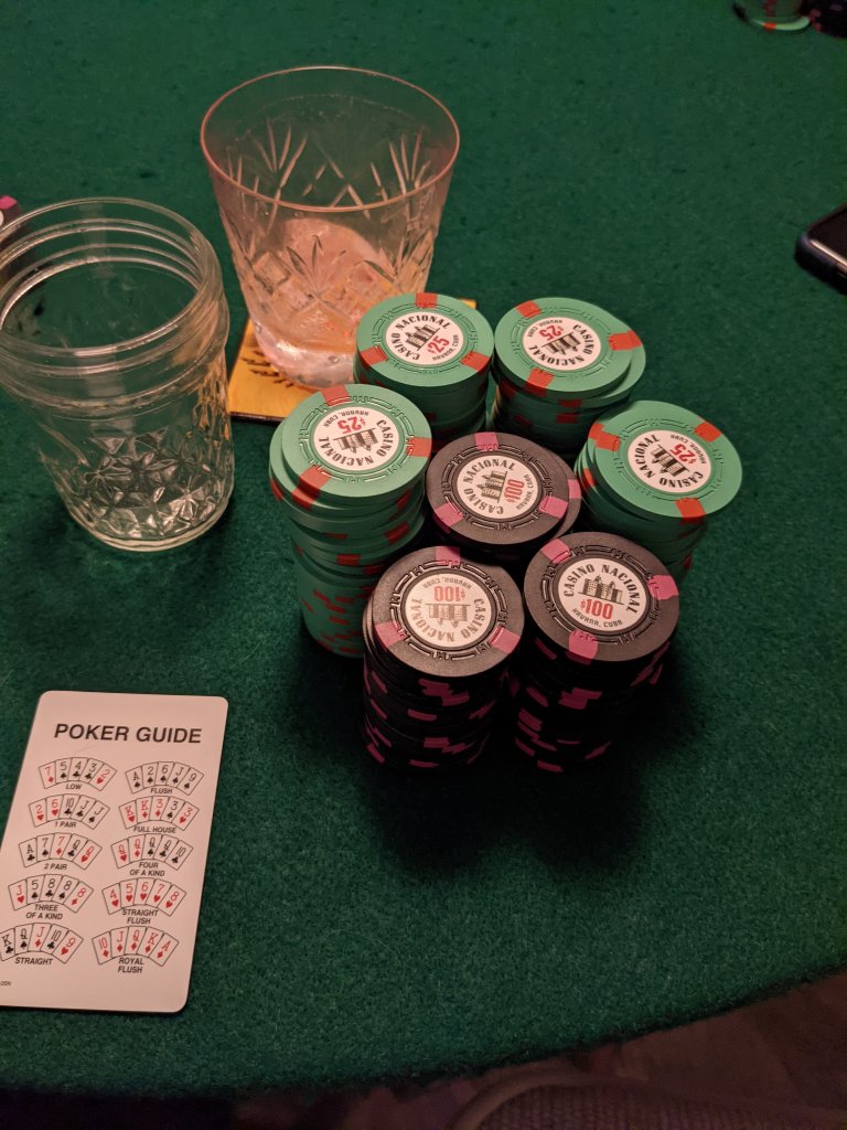 Beautiful. Mark of a great host.Last night was my first time hosting in a long time due to Covid; £30 tournament followed by £0.25 / £0.25 cash. Up £25 on the night — although I probably spent that on booze and other things for the night!