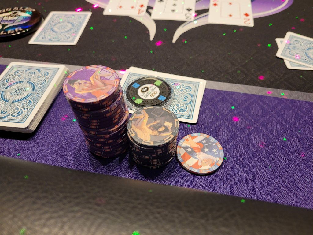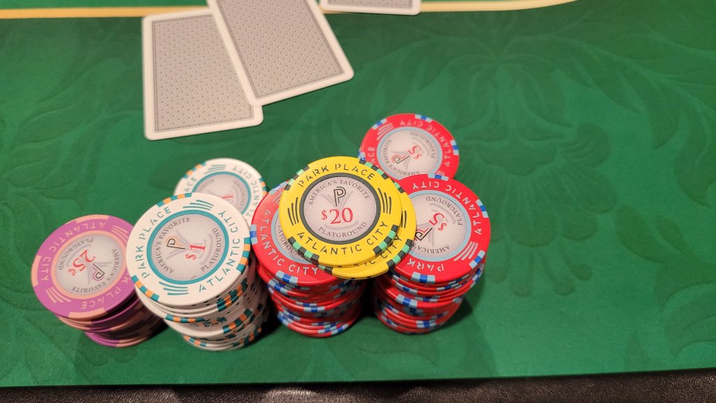 Are those green chips the murdered $25s from the aurora star cash set?8 players left and I have 60% of chips in play. Just have to not donk it off next hand.