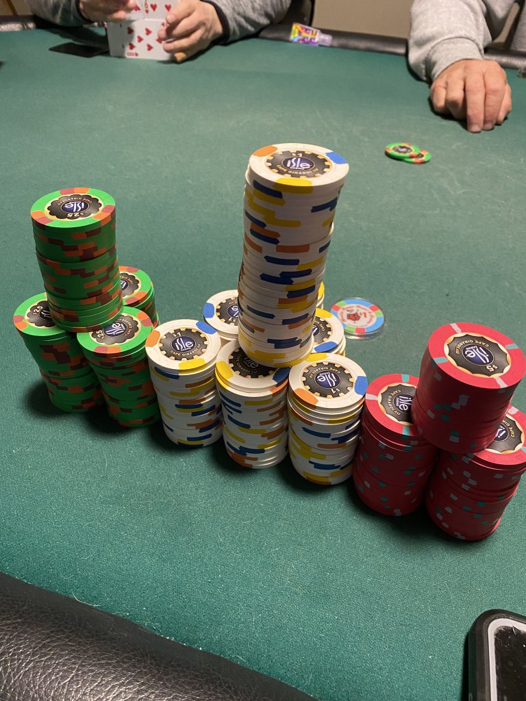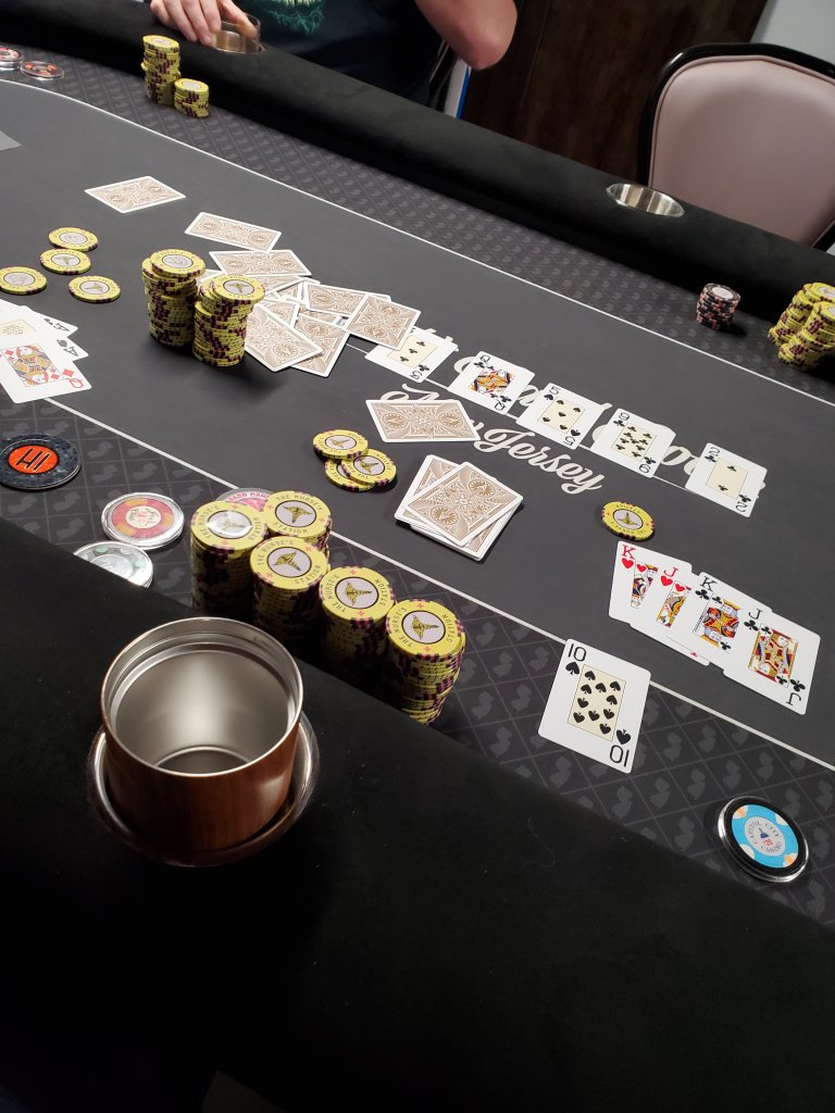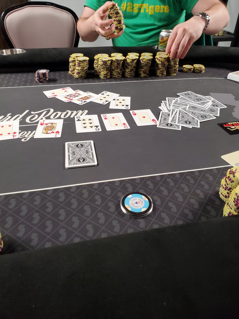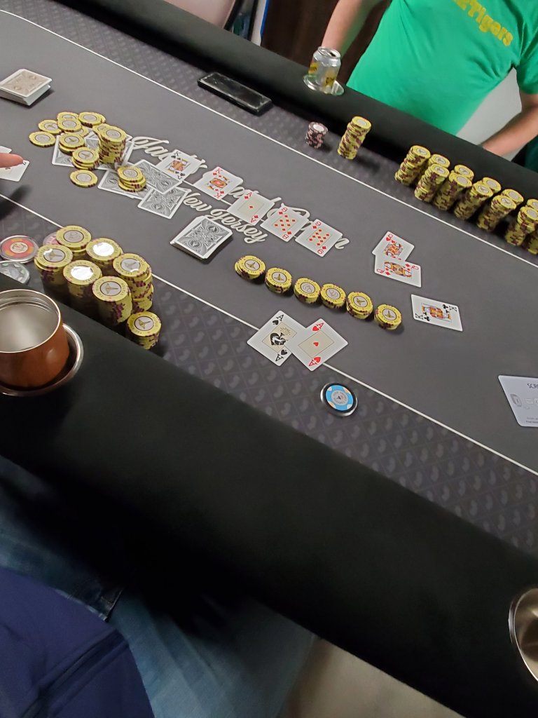 League event #2 was a $20 rebuy tourney with 14 entrants and 53 rebuys so it ran super long and got almost my entire set on the felt. Fun night even though I busted right before the bubble when I shoved 1010 into @TricycleClub ’s JJ. Greg ultimately takes it down.