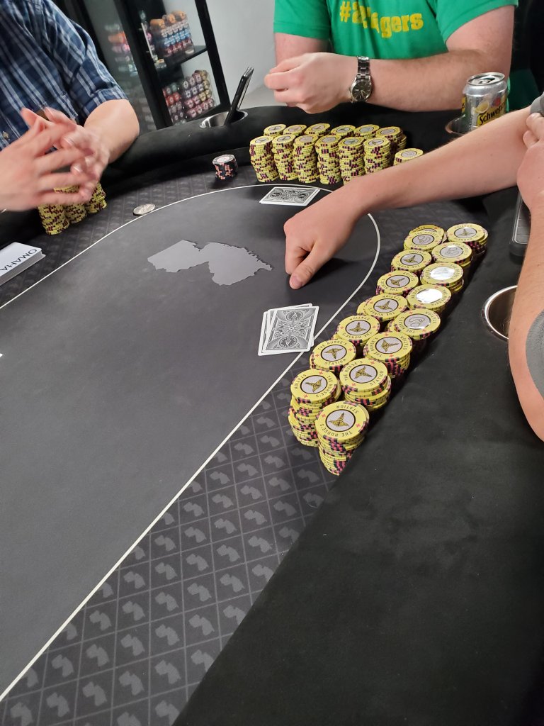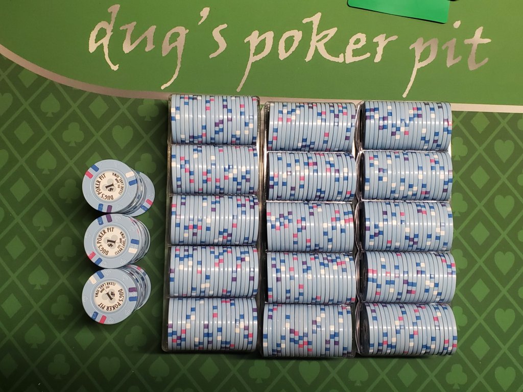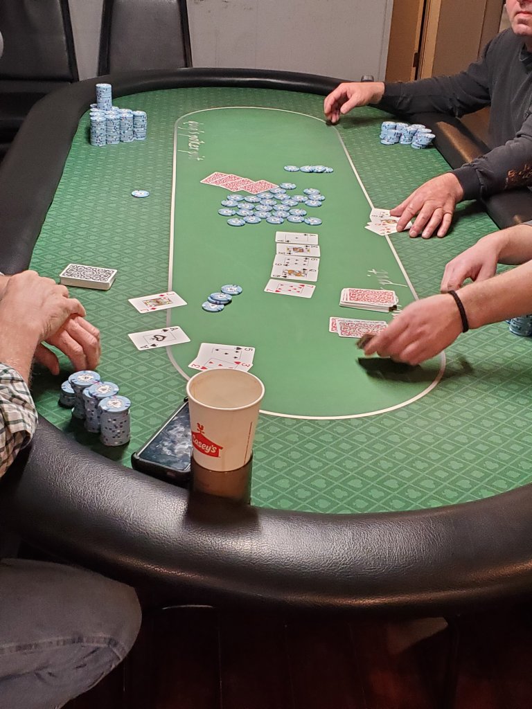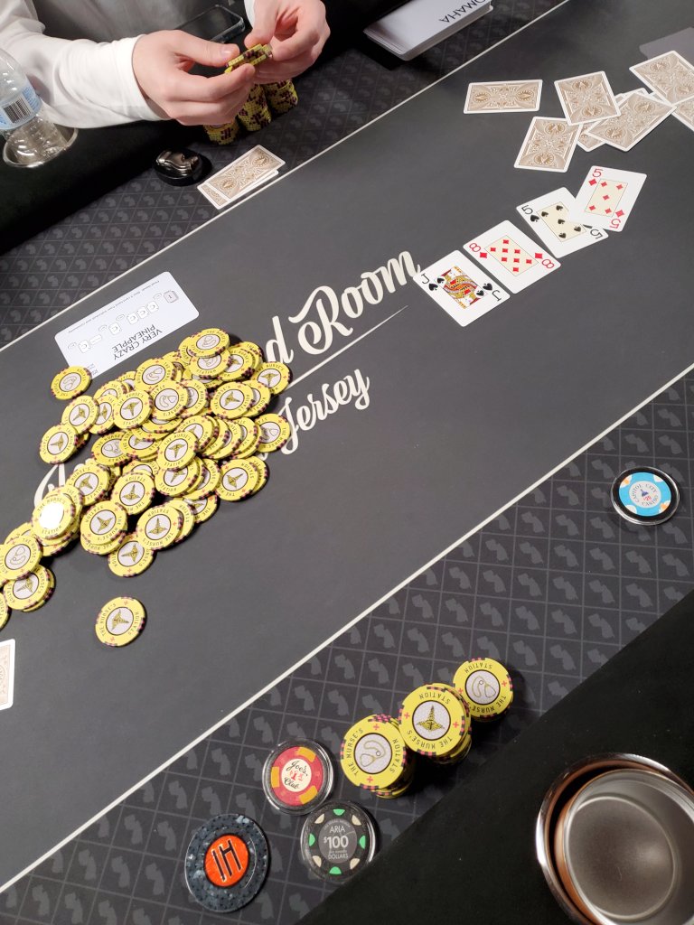 League event #2 was a $20 rebuy tourney with 14 entrants and 53 rebuys so it ran super long and got almost my entire set on the felt. Fun night even though I busted right before the bubble when I shoved 1010 into @TricycleClub ’s JJ. Greg ultimately takes it down.