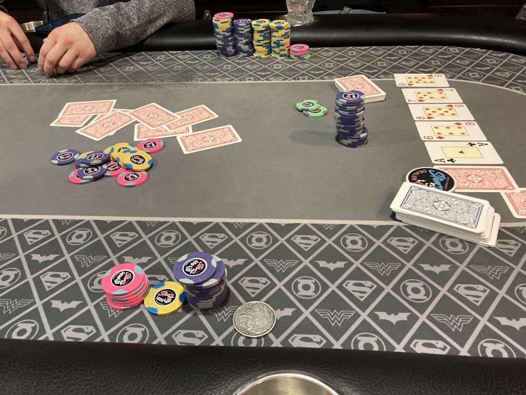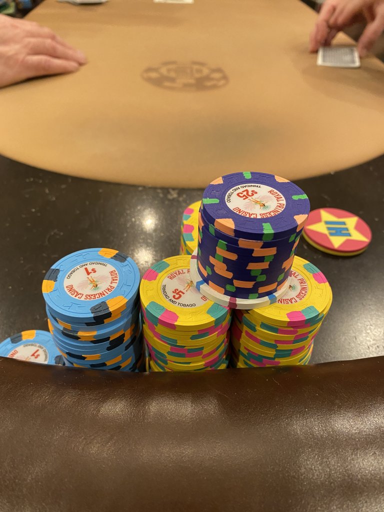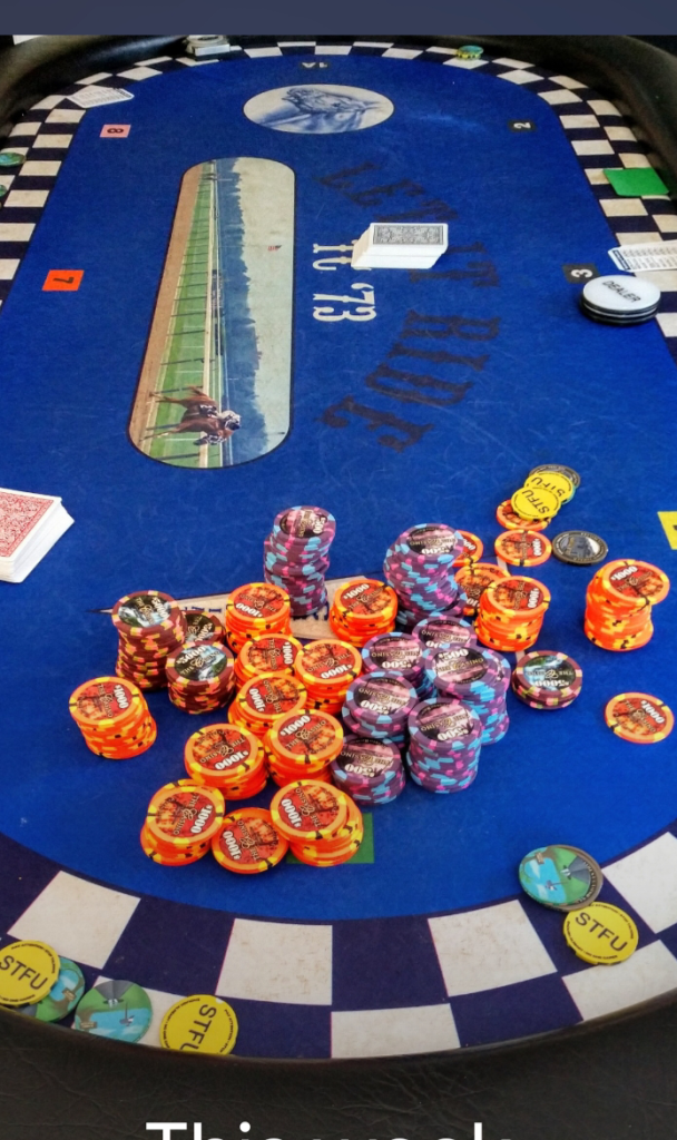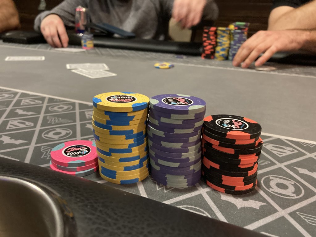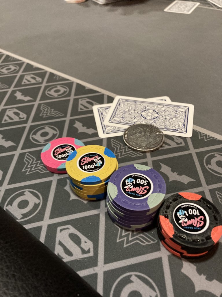 League event #2 was a $20 rebuy tourney with 14 entrants and 53 rebuys so it ran super long and got almost my entire set on the felt. Fun night even though I busted right before the bubble when I shoved 1010 into @TricycleClub ’s JJ. Greg ultimately takes it down.