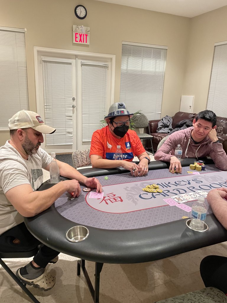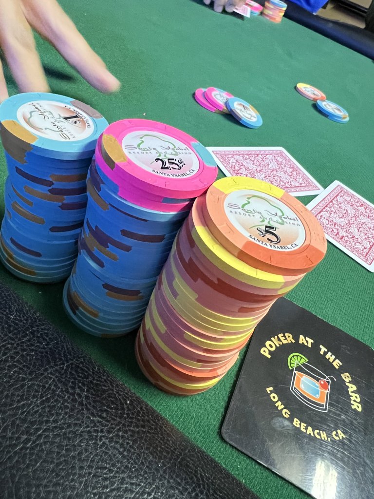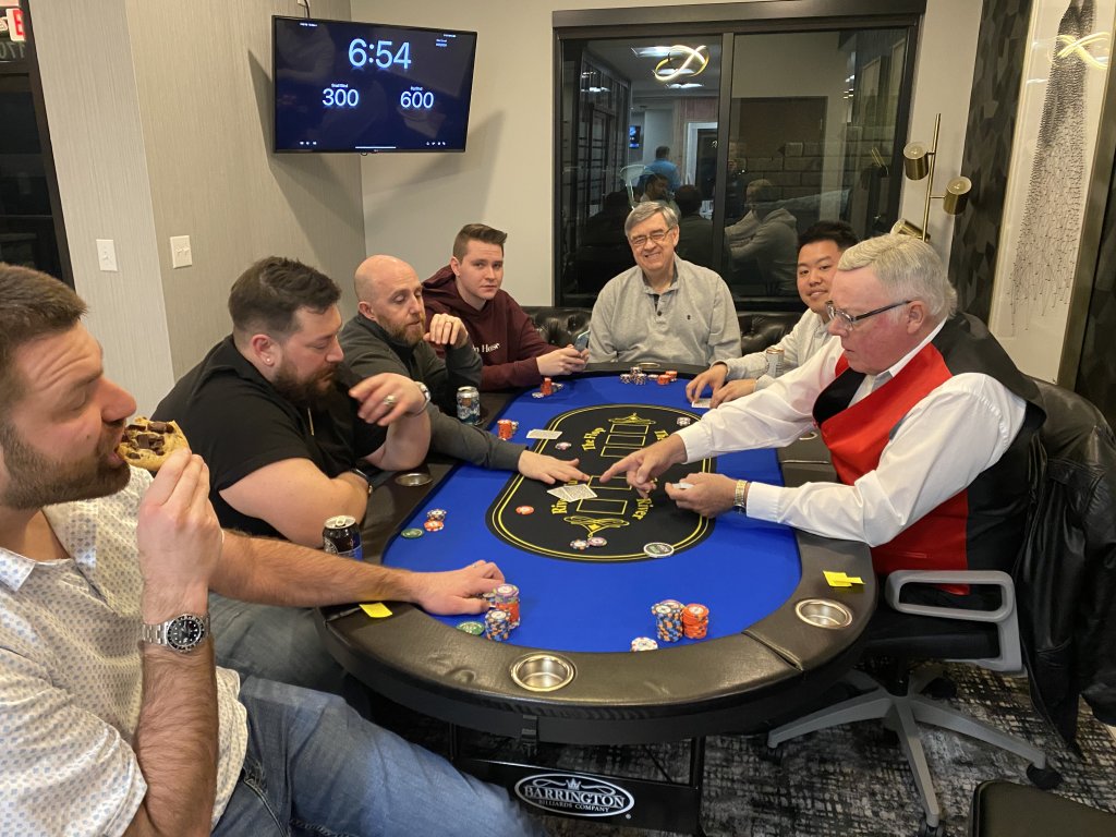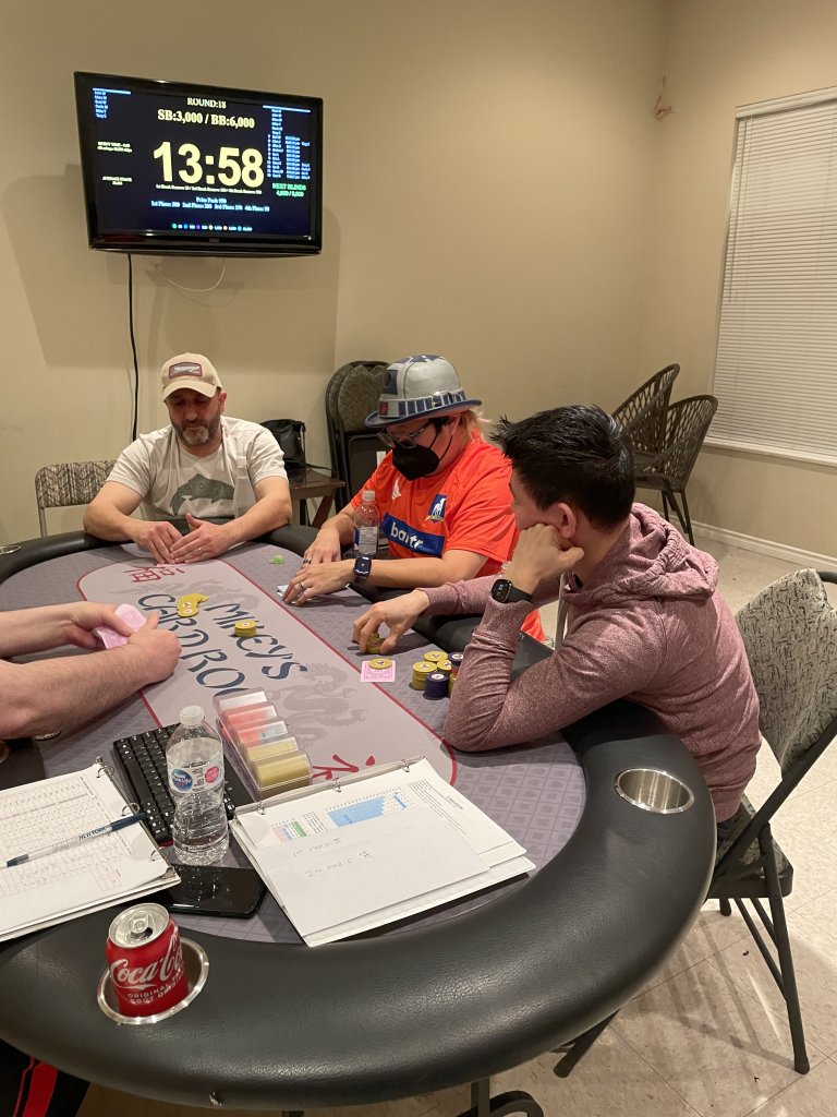 Must be a delight to play at your Tourney, come even with Dealer at each tableThis was my second time hosting a tournament. I had 3 tables. I brought in professional dealers this time which made a huge difference. I got to use my custom cards mold chips for the first time and they were awesome!