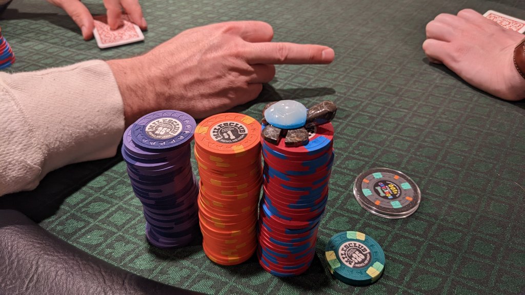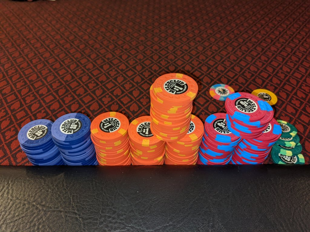 Most bought in for $120 to have a barrel of $1s and $5s. But a couple guys bought in short. One guy bought in for $40 and needed to add on by the third race.