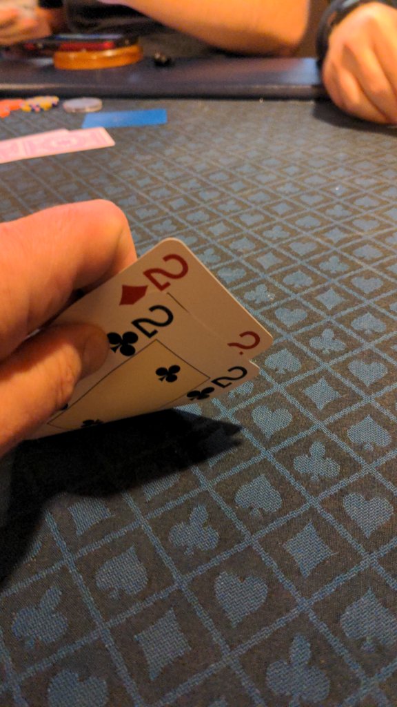 Using two different decks (Kem Arrows and Modiano 4 PIP) was kinda tilting. Didn't seem to bother anyone else.