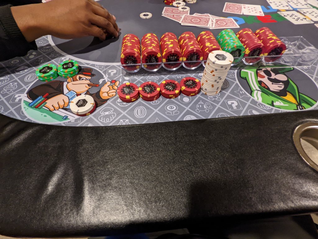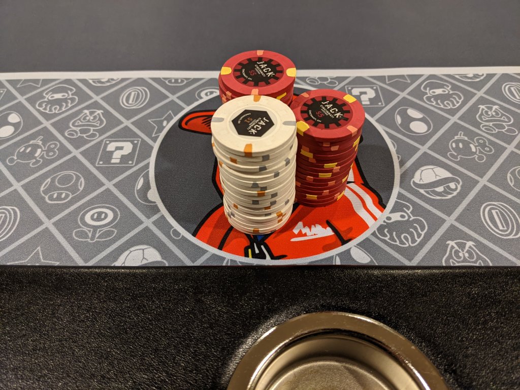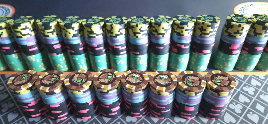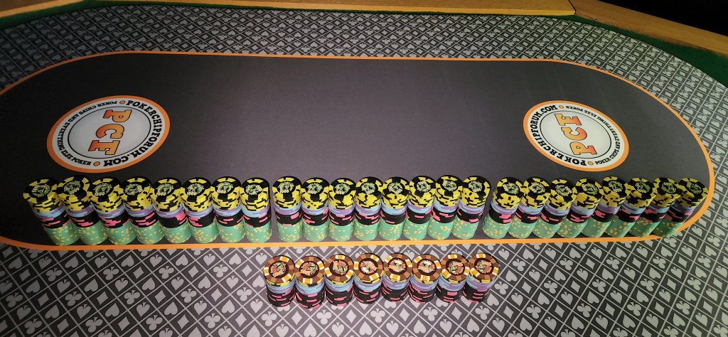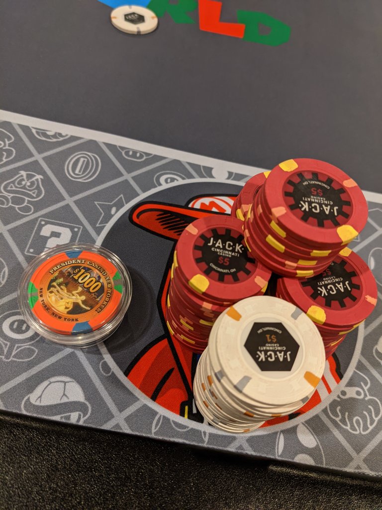 I offered to bring my cash set but the host declined and said he already had $20 stacks in bags. :confused My first live cash game in over 2 years so I didnt care and it was kind of fun to play with the OG dice set that I thought were cool when I first started playing. :)